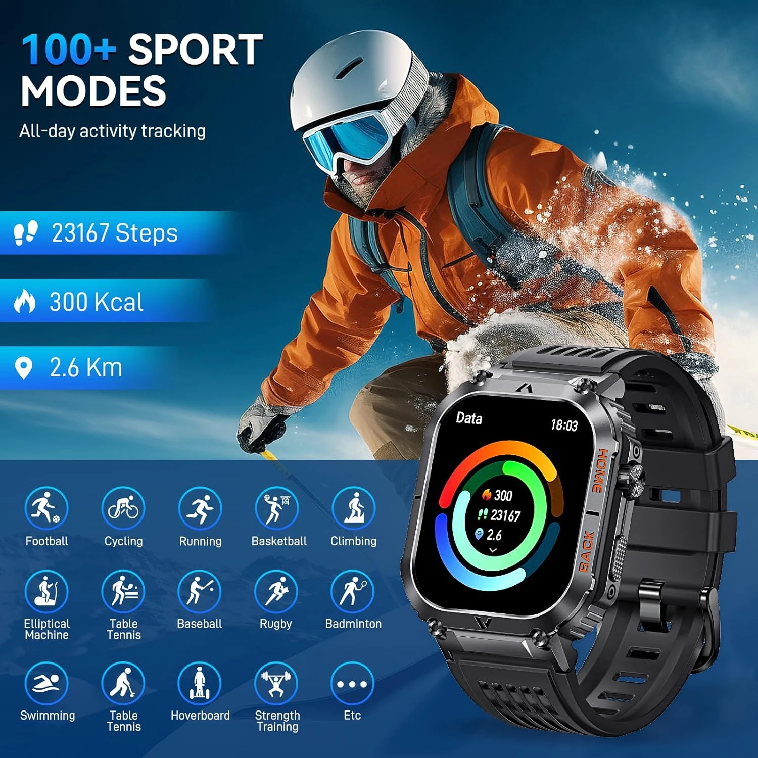 Découvrez notre Montre Connectée Plongée conçue selon une norme de qualité militaire pour résister aux conditions les plus extrêmes. Avec ses 10 certifications de qualité militaire, elle est votre partenaire fiable pour toutes vos aventures sous la mer ou en plein air. Son écran HD entièrement tactile de 2,02’’ offre un meilleur effet visuel pour une expérience de fonctionnement fluide.