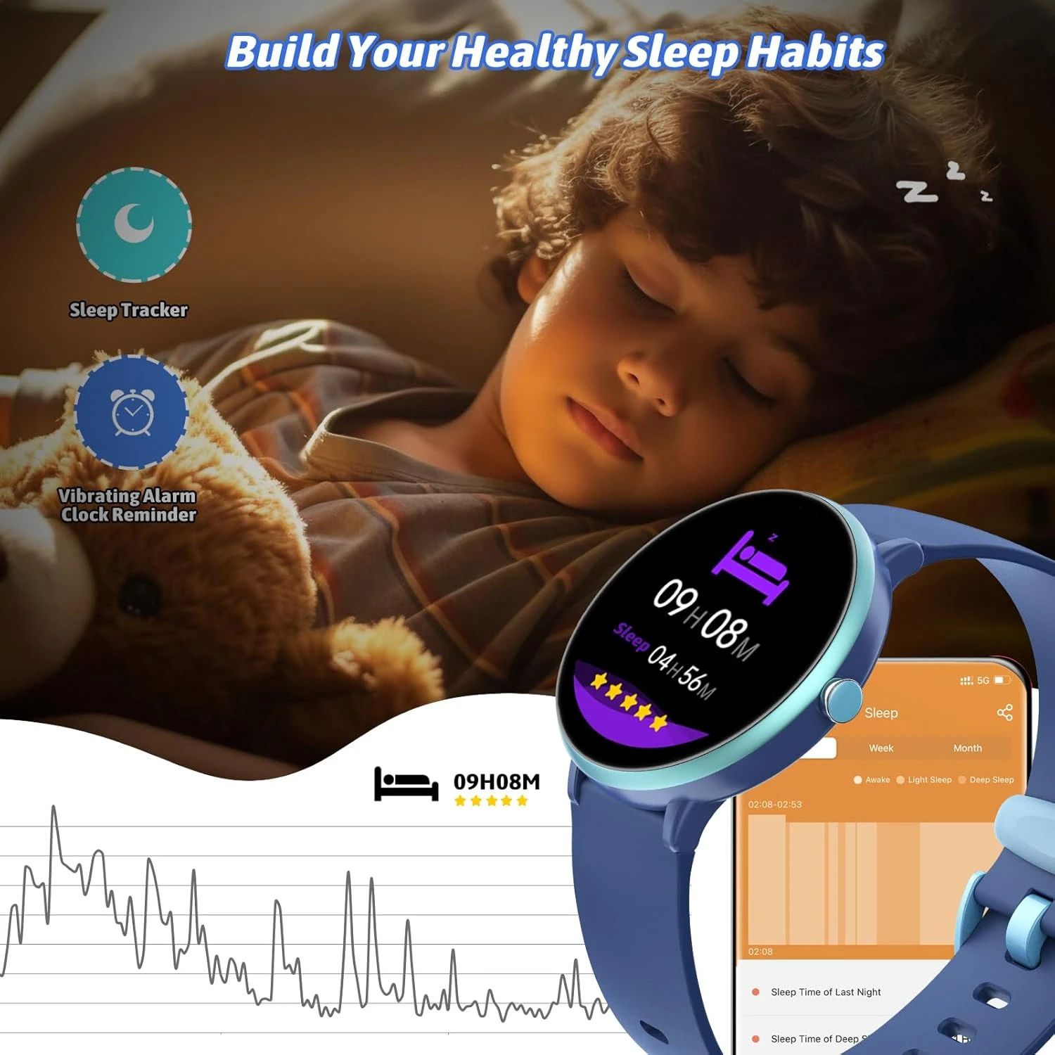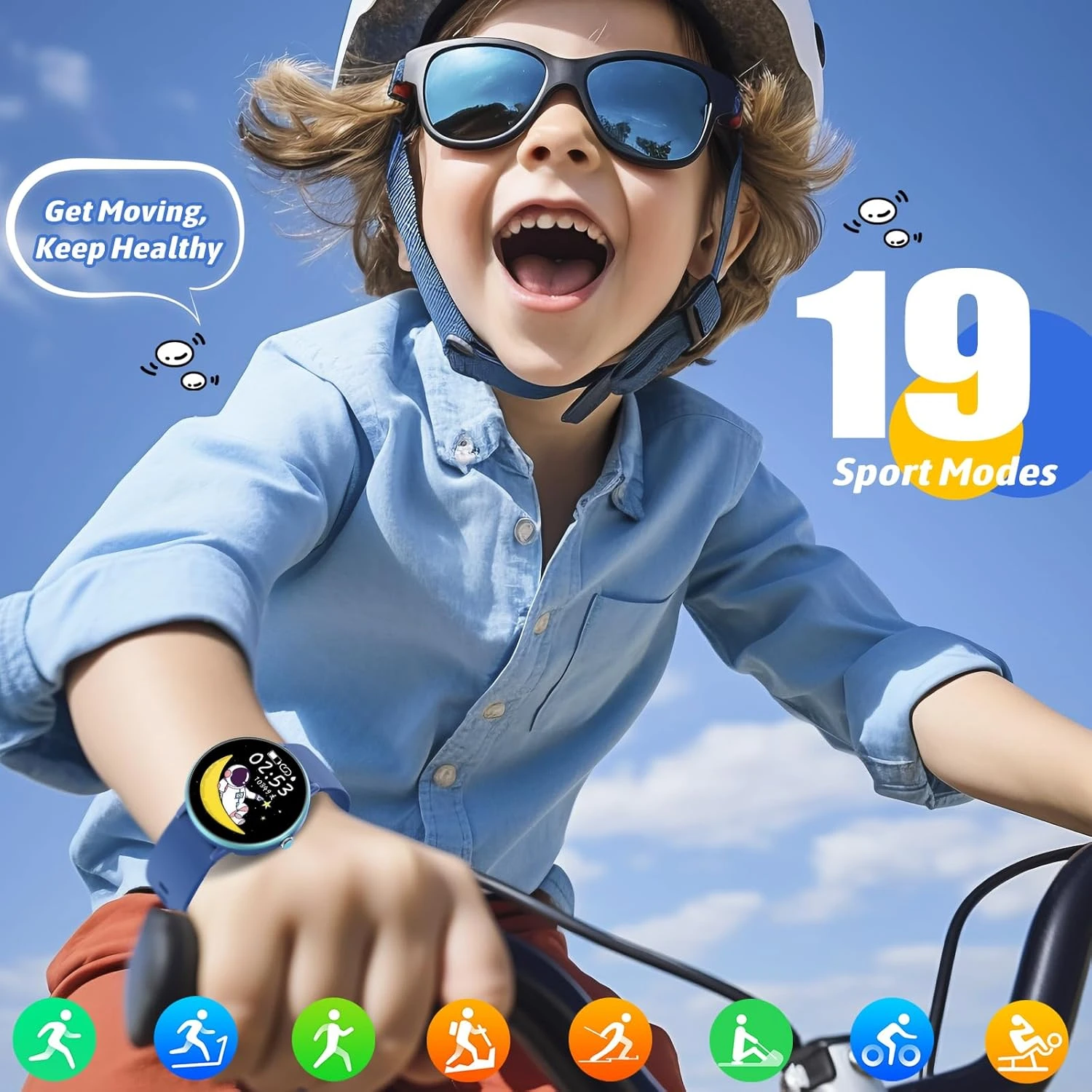 Avec 19 modes sportifs disponibles, cette montre suit les performances de votre enfant dans des activités comme la course, le vélo ou encore le basket-ball. Grâce à son podomètre, elle compte les pas, les calories brûlées et mesure la distance parcourue. De plus, son capteur de fréquence cardiaque permet un suivi de la santé, essentiel pour les enfants actifs.