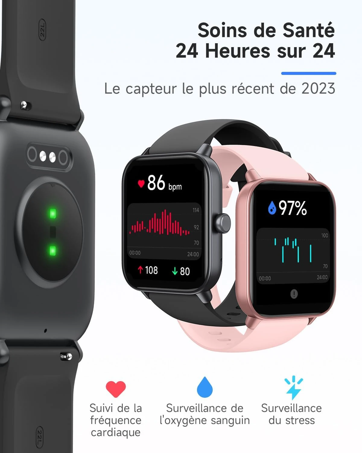 Restez toujours connecté avec notre technologie Bluetooth 5.3, assurant une connexion stable et fiable. Recevez toutes vos notifications importantes en temps réel directement sur votre poignet, qu’il s’agisse de SMS, d’e-mails ou de mises à jour des réseaux sociaux. De plus, vous pouvez passer et recevoir des appels sans avoir à chercher votre téléphone. Notre montre connectée est compatible avec les téléphones Android et iPhone, vous permettant de rester en contact où que vous soyez.