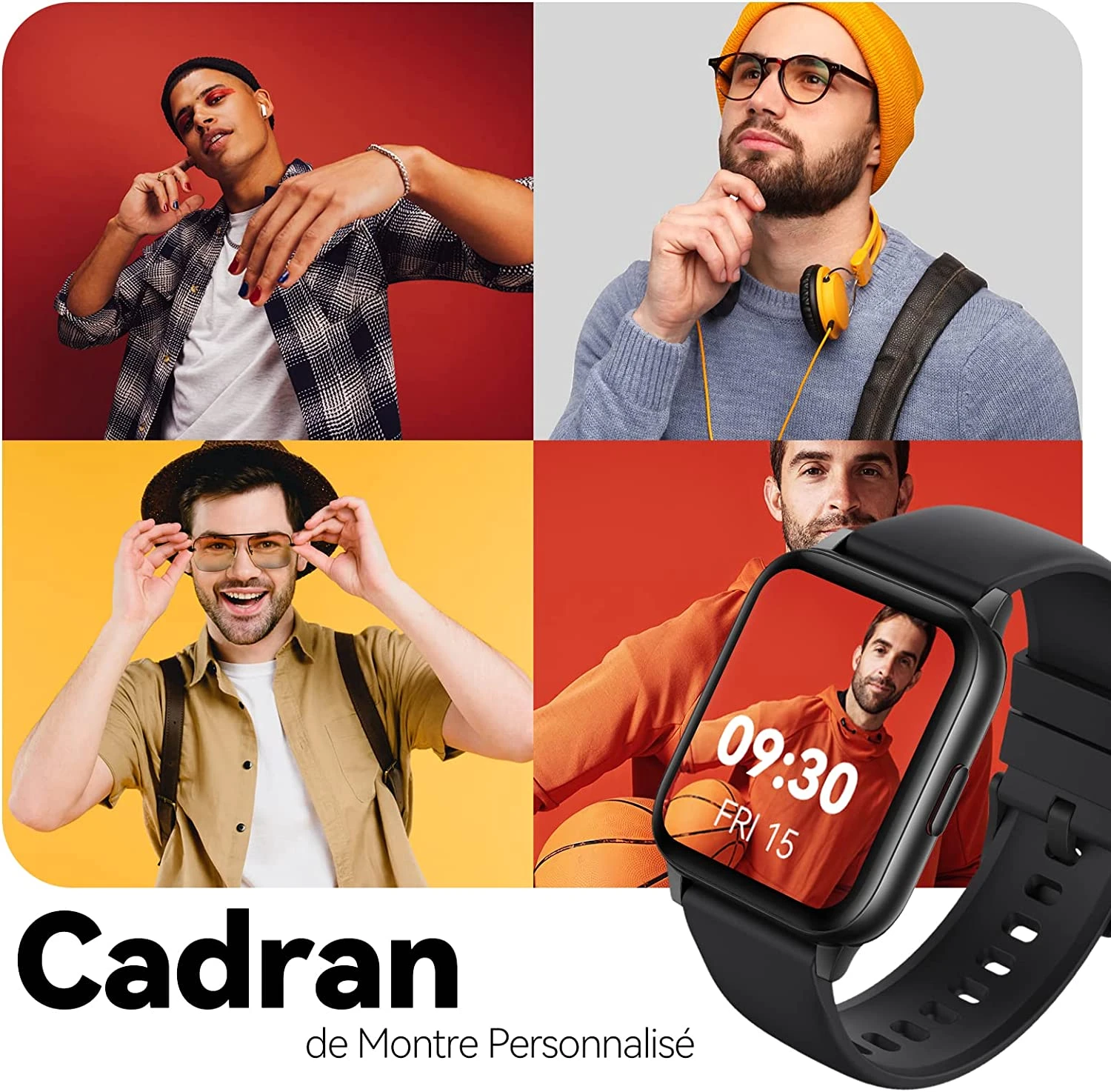 Equipée d’un écran couleur tactile HD de 1,69 pouces, cette montre offre une clarté exceptionnelle et une luminosité ajustable, même sous le soleil. Avec 4 cadrans de montre prédéfinis et la possibilité de définir un fond d’écran personnel, elle permet de personnaliser votre style selon vos envies.