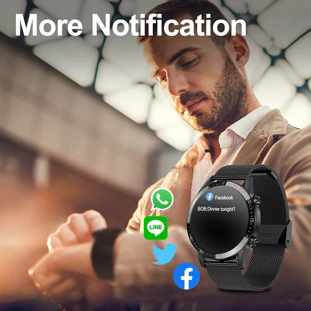 Surveillance de la Santé ❤️ Grâce à son capteur de mouvement haute performance, notre montre surveille votre fréquence cardiaque en temps réel et suit automatiquement votre temps et vos phases de sommeil pour vous aider à adopter un mode de vie plus sain. Recevez des notifications de message directement sur votre poignet, y compris les réseaux sociaux tels que Facebook, Instagram, Twitter, WhatsApp, Gmail, et bien d’autres.