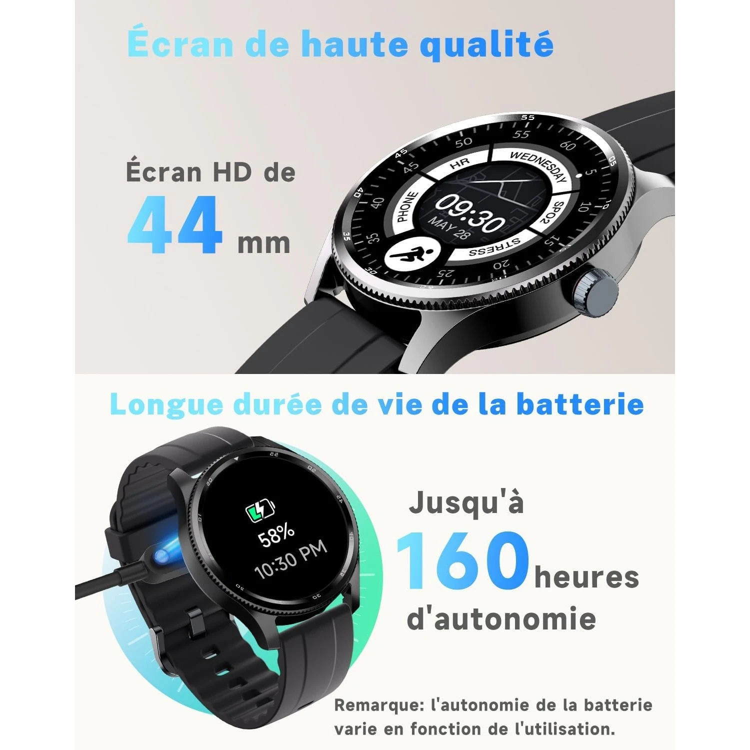 🔋 Grande autonomie : Grâce à une longue durée de batterie, vous pouvez profiter de votre montre connectée pendant des périodes prolongées sans avoir à vous soucier de la recharge. Une charge de 2 heures offre une autonomie impressionnante, vous laissant plus de temps pour profiter de ses avantages.