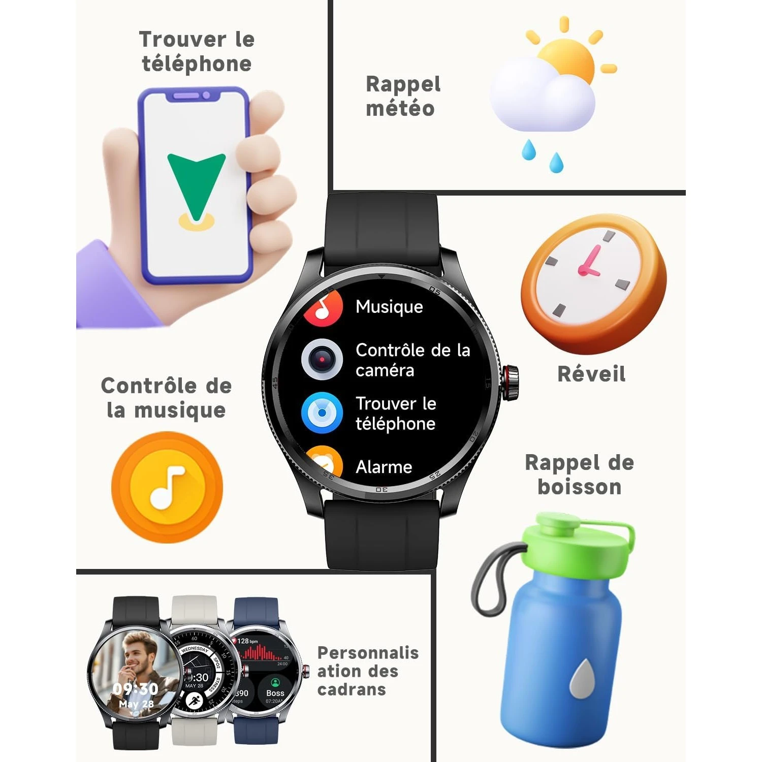 Avec la possibilité de passer et de recevoir des appels ainsi que de recevoir des notifications, vous resterez informé(e) sans même avoir à toucher votre téléphone. Notre montre connectée est compatible avec les téléphones Android et iOS, offrant ainsi une solution polyvalente pour tous les utilisateurs.