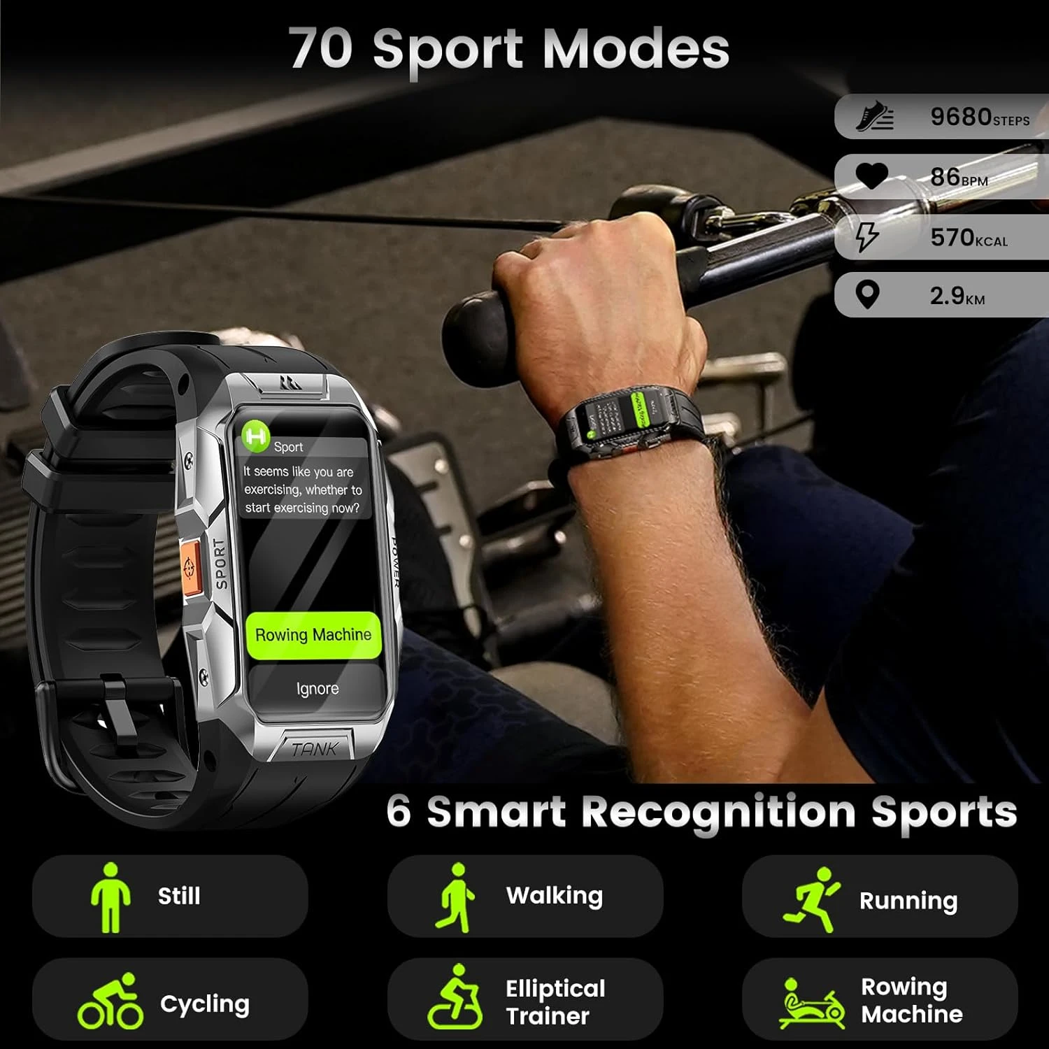🏃 70 Modes Sportifs : Équipée du capteur optique BioTracker PPG et d’un algorithme AI avancé, notre montre reconnaît intelligemment 6 sports et peut passer automatiquement en mode d’entraînement. Elle prend en charge jusqu’à 70 modes sportifs, incluant des activités intérieures et extérieures comme la randonnée, le ski et la natation. Chaque exercice est enregistré avec précision pour maximiser vos résultats.