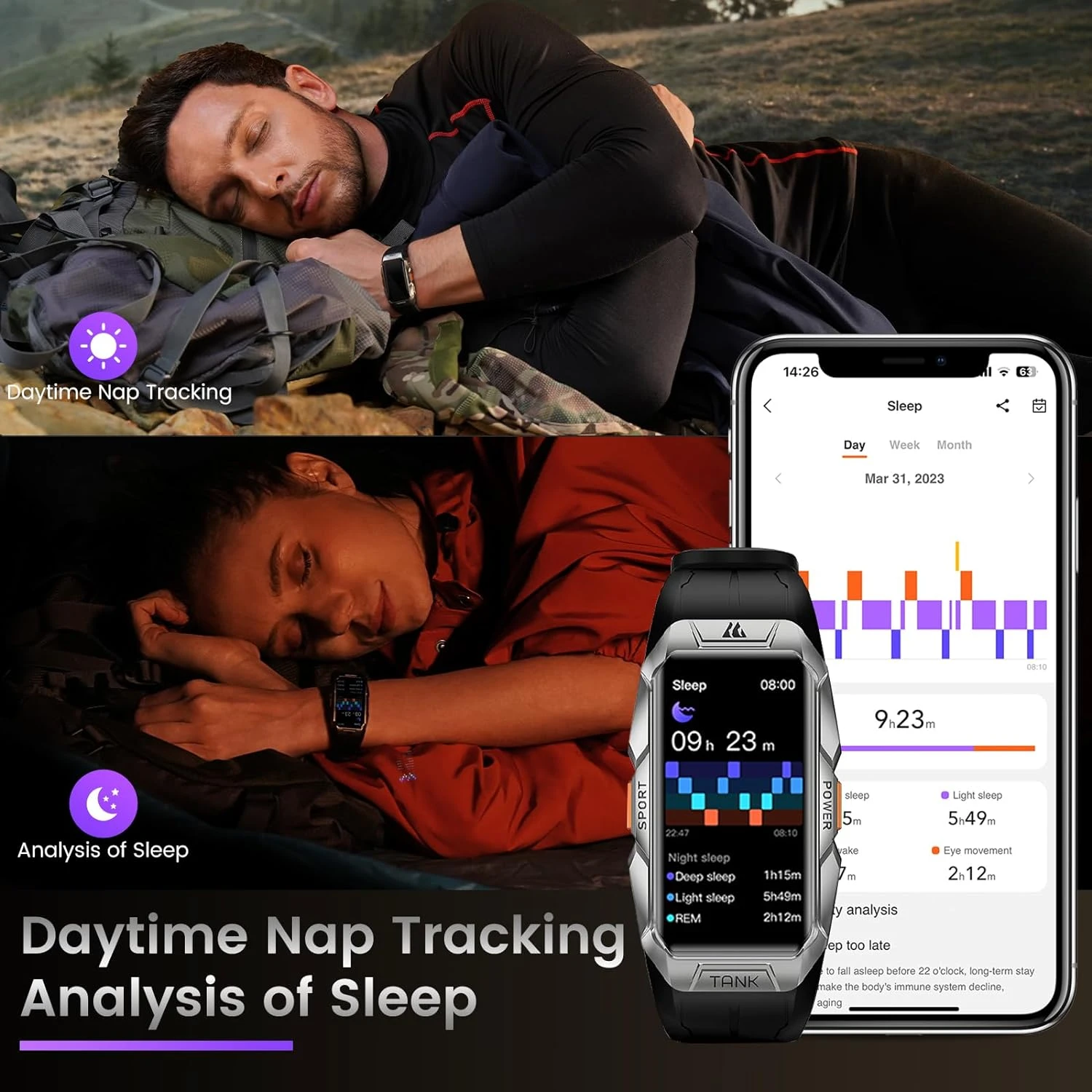 💦 10ATM & IP69K Étanche : Dotée d’un boîtier en titane de qualité militaire et d’une coque complètement fermée, notre montre connectée est étanche jusqu’à 10ATM et IP69K. Elle peut résister à une pression d’eau de 100 mètres et est idéale pour des plongées en loisir jusqu’à 30 mètres. Affrontez les tempêtes et conquérir les mers en toute sérénité avec cette montre ultra-durable.
