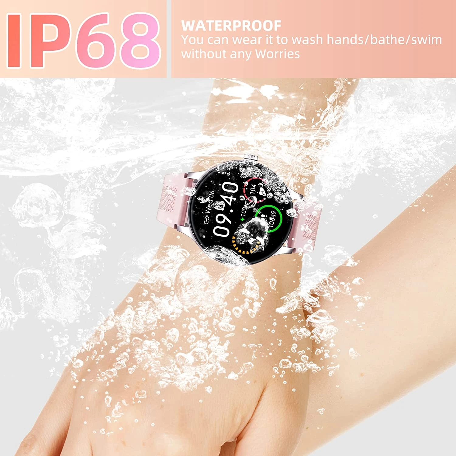 Dotée de l’étanchéité IP68, cette montre résiste aux éclaboussures et aux intempéries. Vous pouvez ainsi l’utiliser sous la pluie, en nageant ou encore en vous lavant les mains sans crainte. Elle est compatible avec les smartphones sous iOS 10.0 et Android 5.0 ou versions supérieures, avec Bluetooth 5.0.
