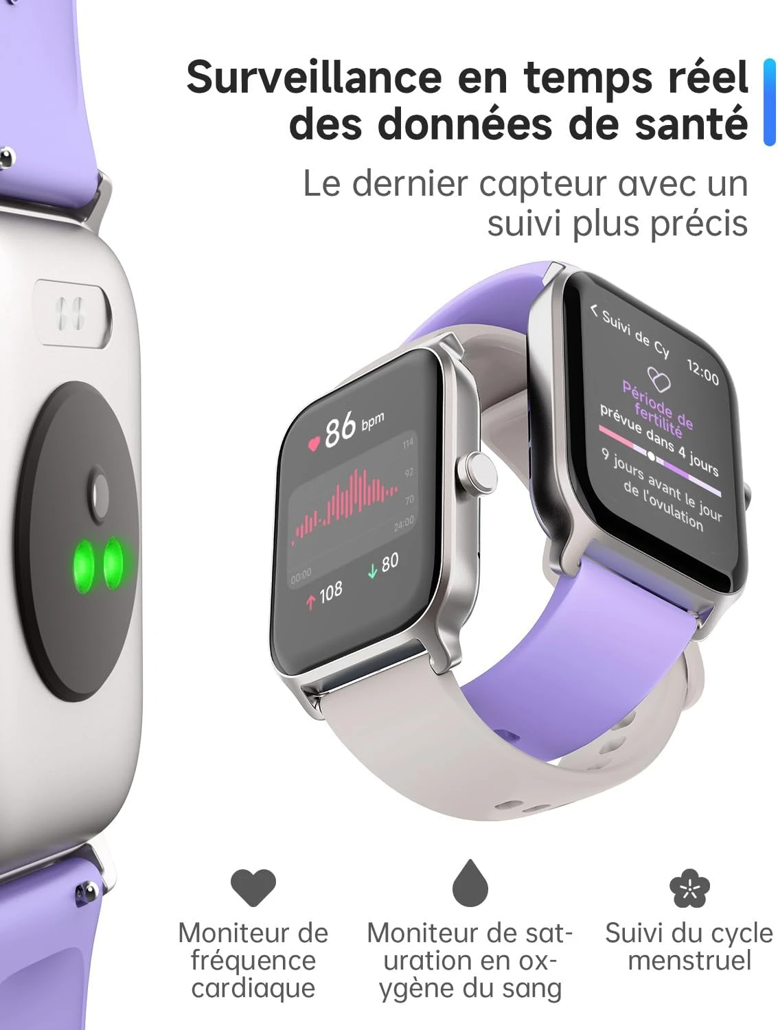 Mais cette montre ne se contente pas d’être un gadget intelligent. Elle prend soin de votre santé de manière proactive. Elle surveille en temps réel votre fréquence cardiaque, votre taux d’oxygène dans le sang et vous alerte en cas d’anomalies. Elle peut également suivre votre cycle menstruel et prédire votre prochaine période de fécondité 👌.
