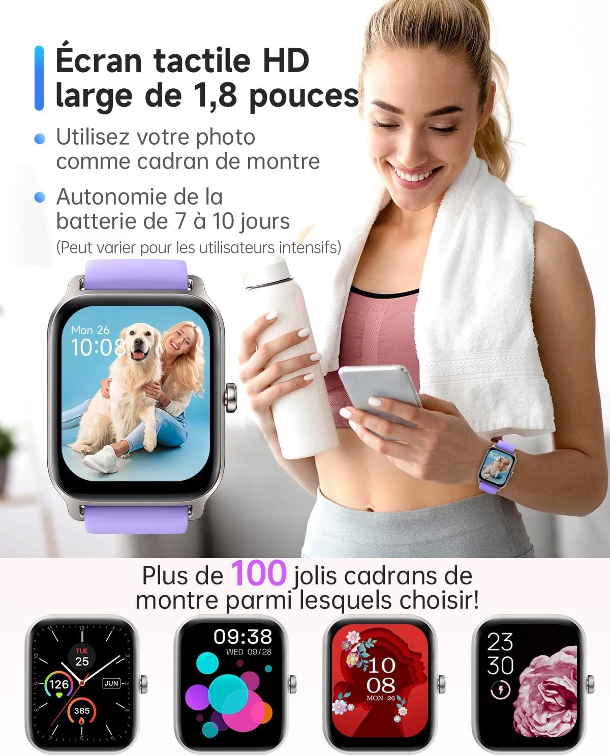 Smart watch feminine avec suivi de la santé et du sport