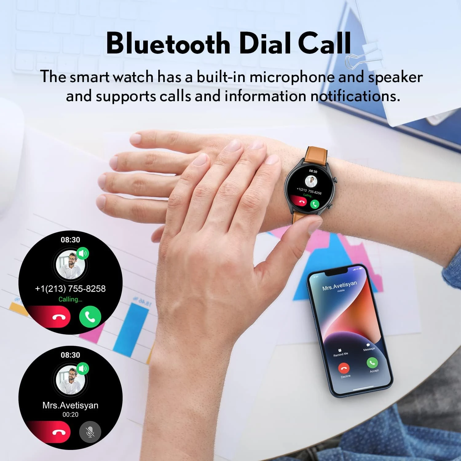 ⌚ Tendance et Fonctionnelle : Dotée d’un écran tactile TFT de 1,32 pouces avec une résolution HD de 360*360 pixels, cette montre est à la fois tendance et fonctionnelle. Vous pouvez ajuster librement la luminosité de l’écran et personnaliser l’interface utilisateur avec une variété de modes interchangeables. La montre peut également être verrouillée pour protéger votre vie privée. Les haut-parleurs intégrés permettent la lecture directe de musique et la commande vocale.