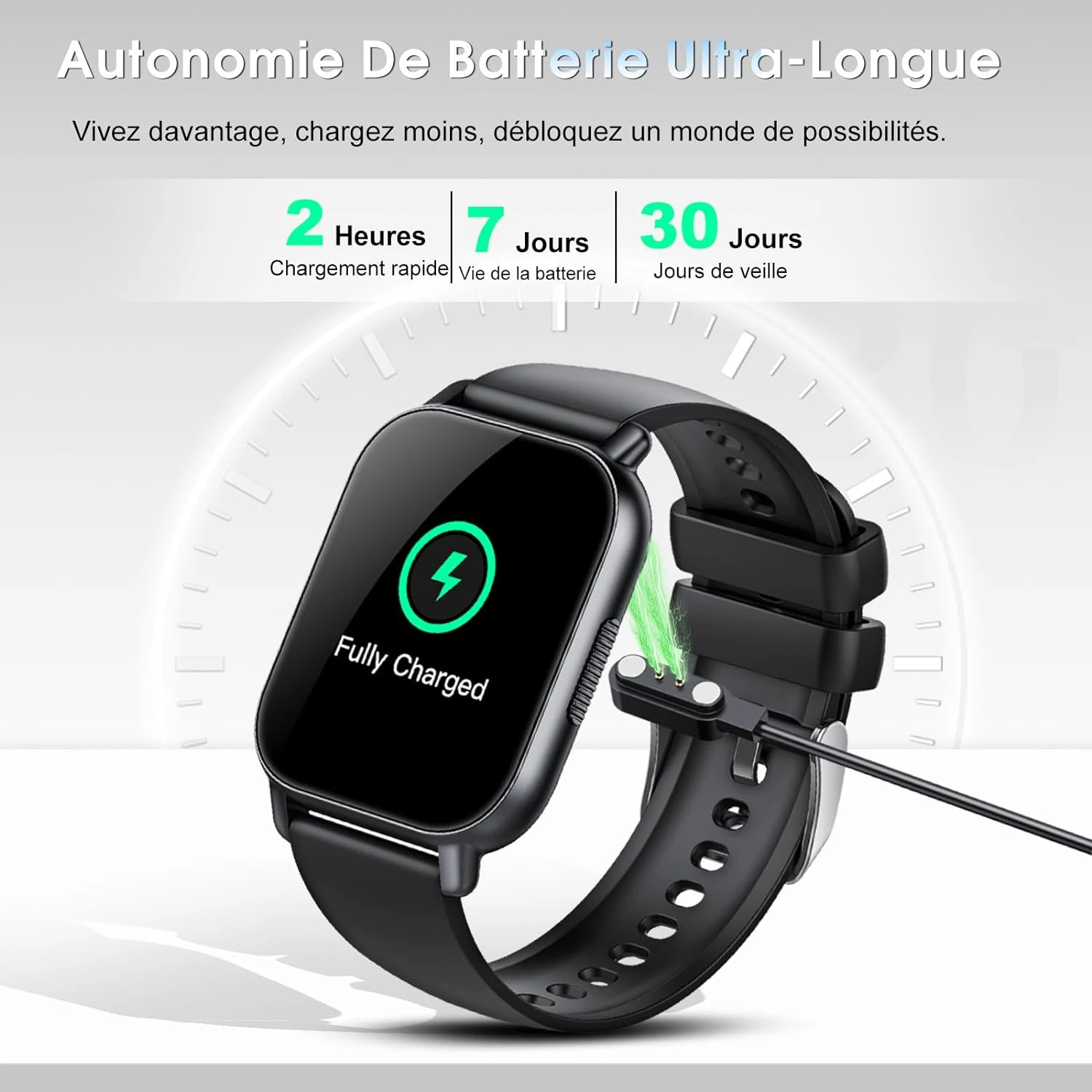 Découvrez notre montre connectée, un accessoire révolutionnaire conçu pour vous accompagner dans chaque aspect de votre vie quotidienne. Grâce à ses fonctionnalités avancées et à son design élégant, elle devient un compagnon indispensable, que ce soit pour rester en contact, surveiller votre santé ou optimiser vos performances sportives.