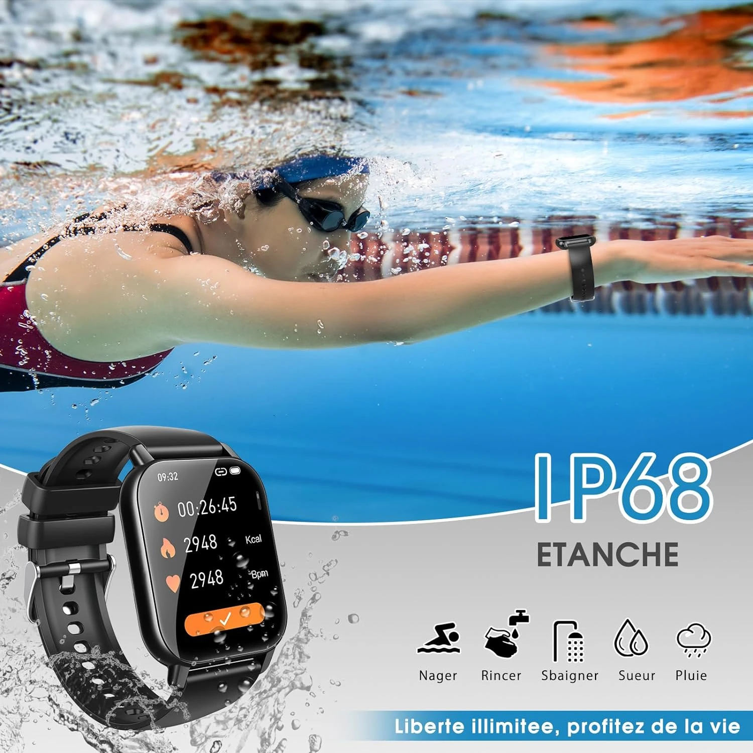 🏃♂️ Le compagnon parfait pour les sports : Idéale pour les amateurs de sport, notre montre propose 112 modes d’exercice, y compris la course à pied, le cyclisme, le yoga et bien plus encore. Résistante à l’eau selon la norme IP68, elle vous accompagne même sous la pluie ou en nageant.
