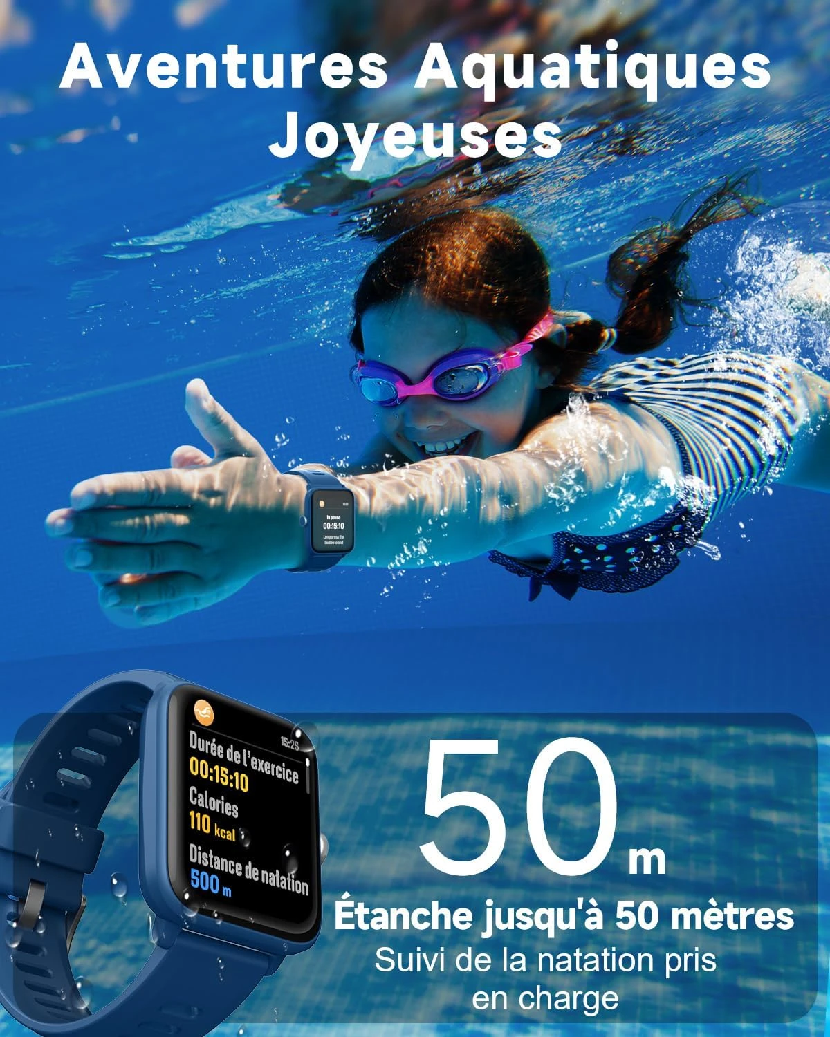 Smartwatch pour Enfant, Étanche Jusqu’à 50 Mètres de Profondeur