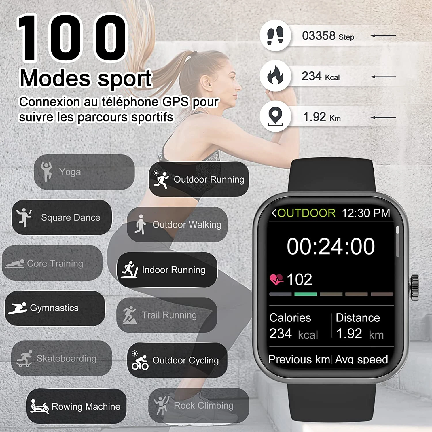| Nombre de mode sportifs supportés : + de 100 | |