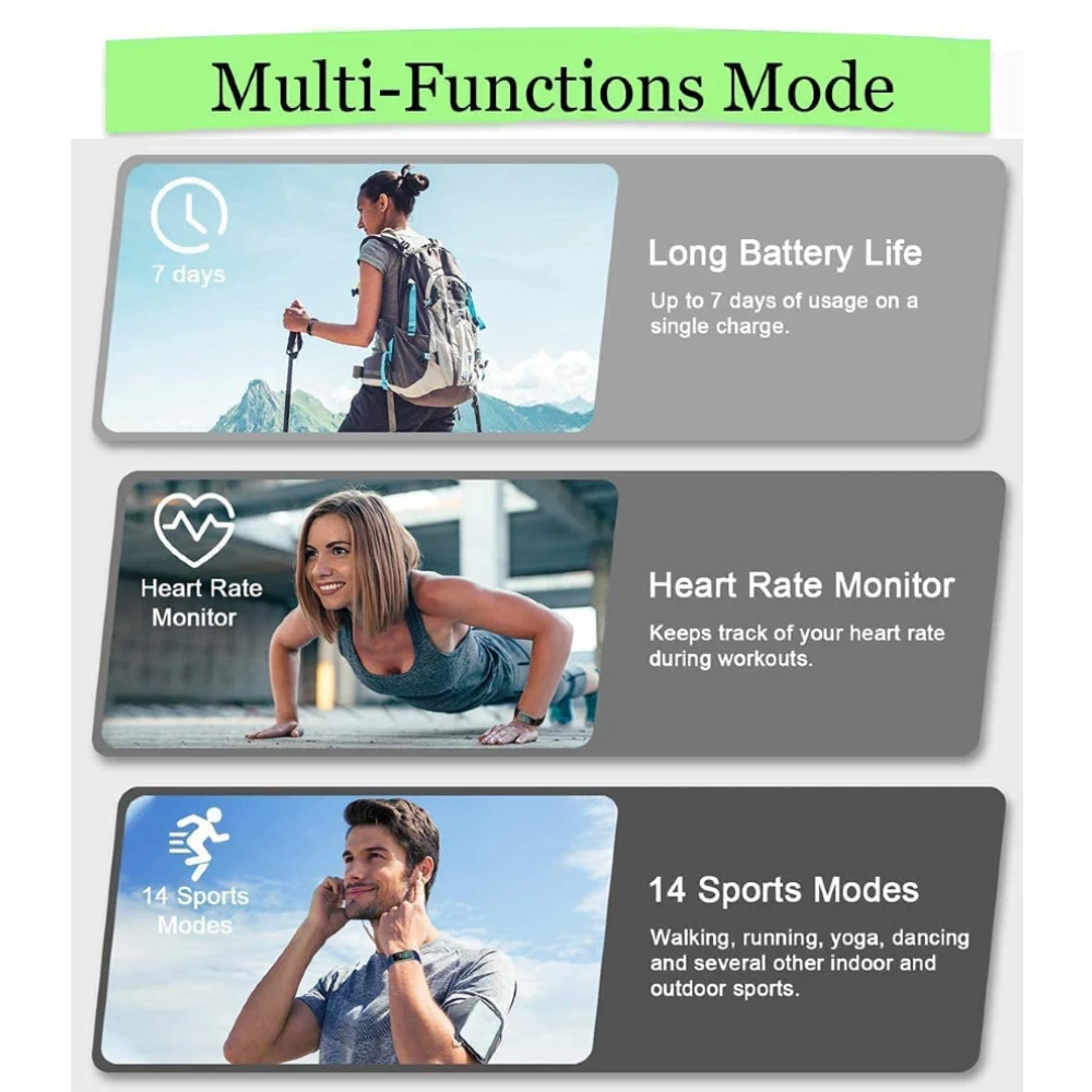 Notre SmartWatch pour adolescents et jeunes adultes combine de nombreuses fonctions sportives telles que le suivi des pas, des calories brûlées, une étanchéité IP67 permettant la natation, le suivi du rythme cardiaque ❤️.