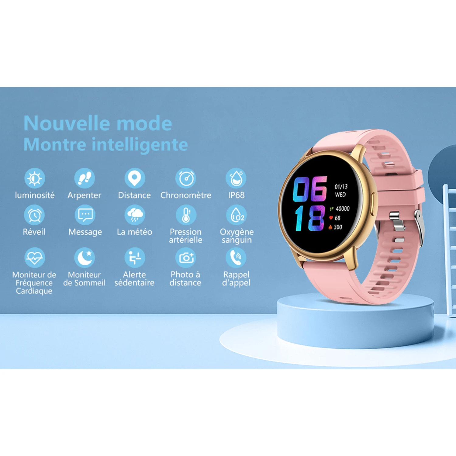 | Catégorie : Montre connectée / Montre connectée sport femme | |