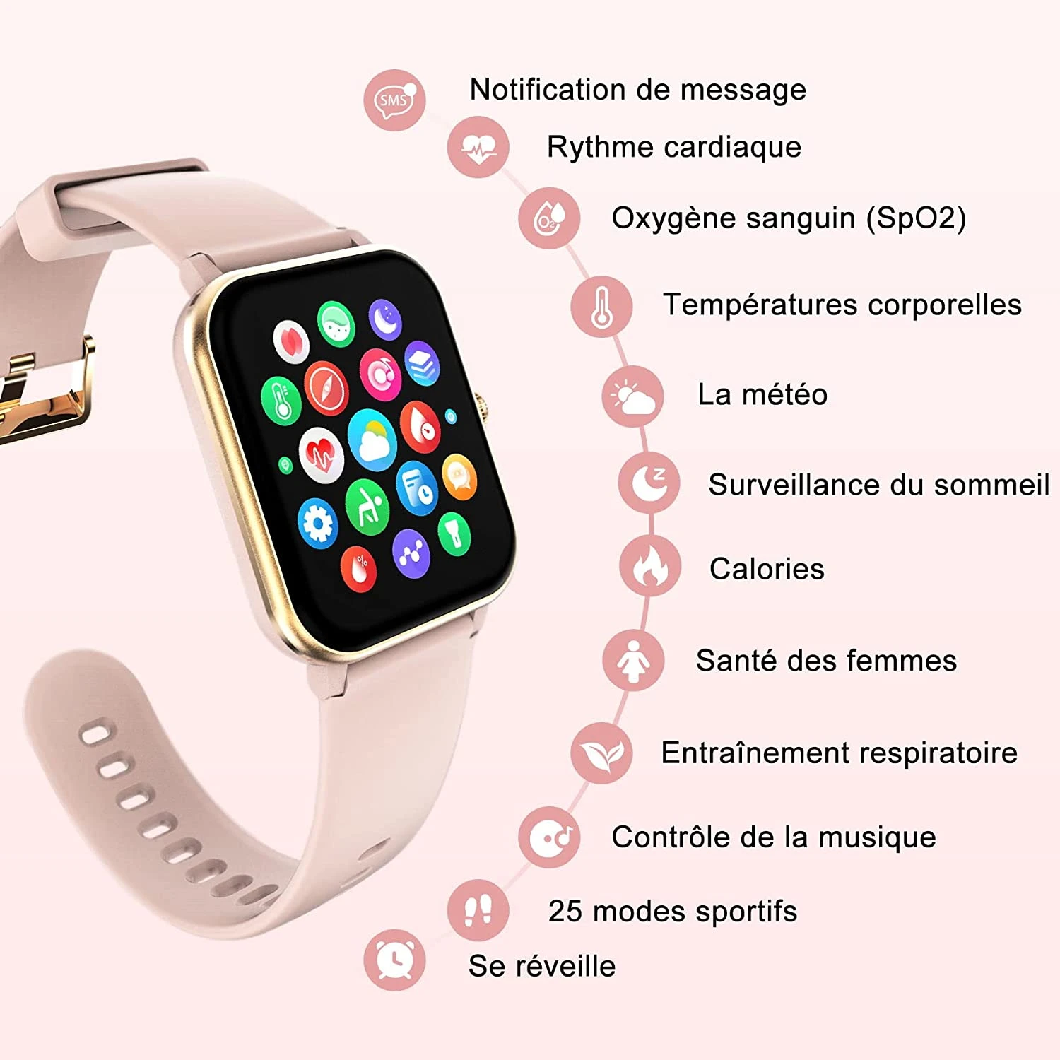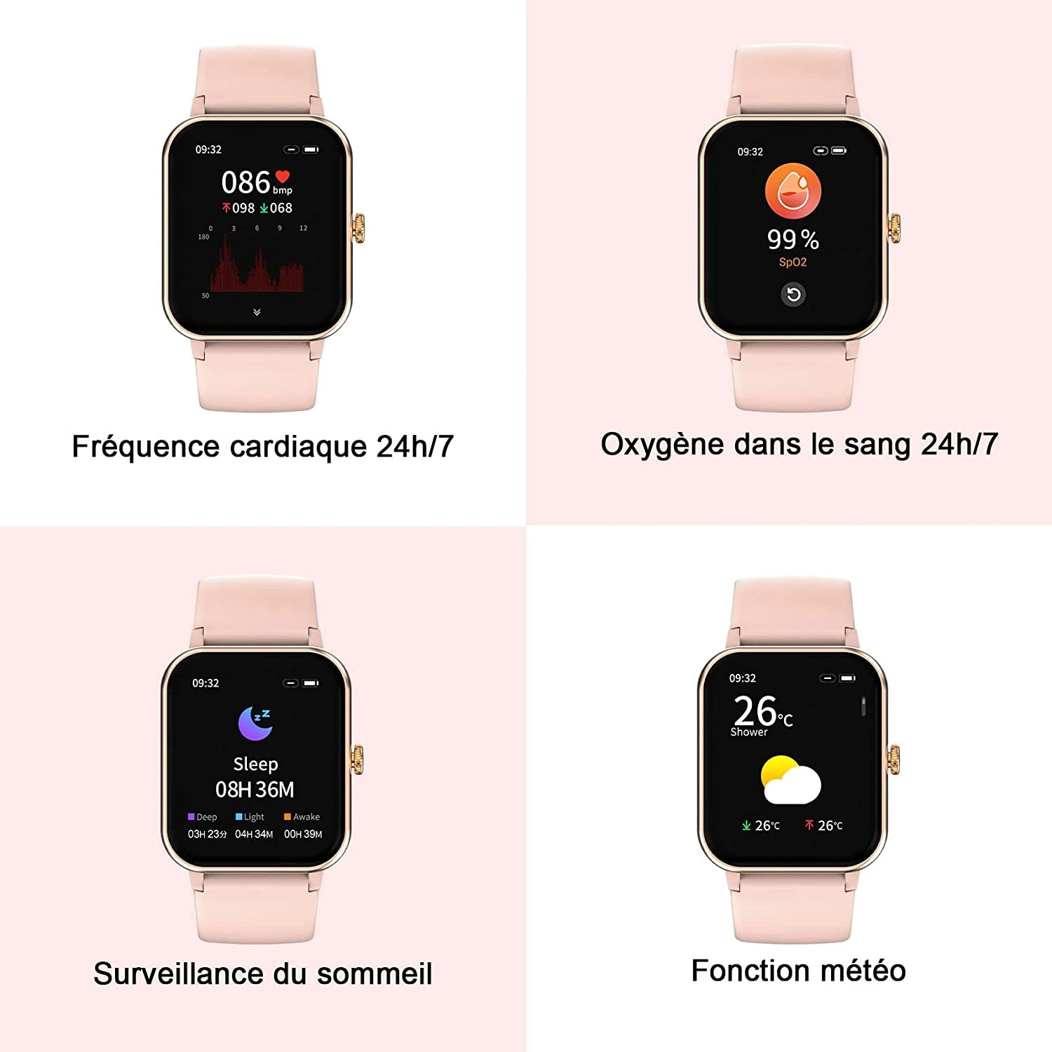 Notre montre connectée pour femmes est simple et complète. Elle permet de suivre les données les plus utiles durant son quotidien et son fond d’écran et totalement customizable ❤️. Elle peut suivre le sommeil ou le sport pratique afin d’en déduire des données et vous les présenter afin de vous améliorer. Une équipe est mise à votre disposition via notre onglet contact afin de répondre sous 24 heures à chacune de vos questions / demandes ✅.