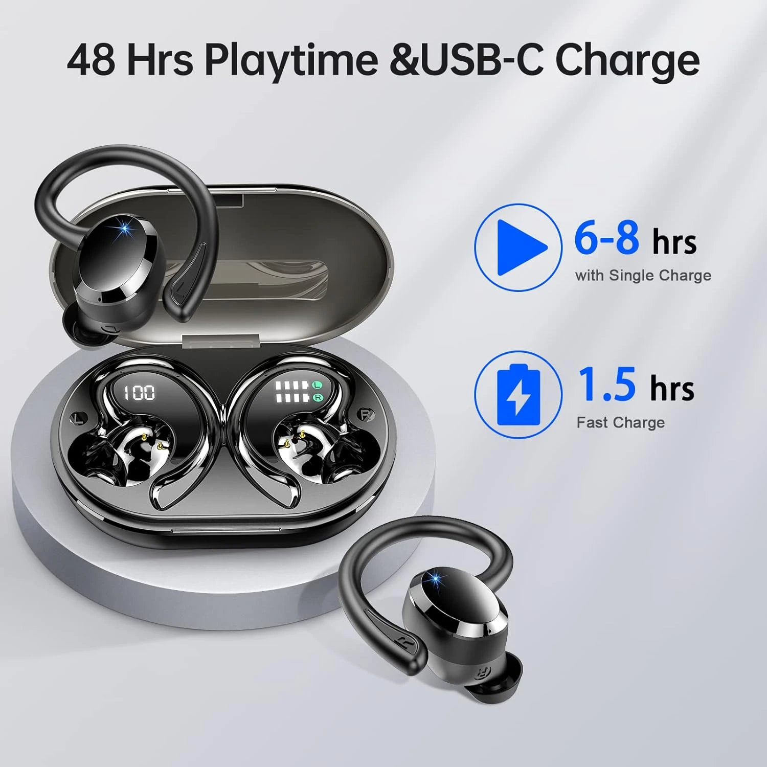 Dual Écran LED et 48 Heures de Lecture : L’écran LED numérique permet de surveiller en temps réel la charge des écouteurs et de l’étui de chargement. Avec une seule charge des écouteurs, vous pouvez profiter de 8 heures d’appels ou de musique, et l’étui de chargement offre 48 heures de lecture supplémentaire. Idéal pour une utilisation quotidienne ou lors de voyages, camping et randonnées. 🕐🔋