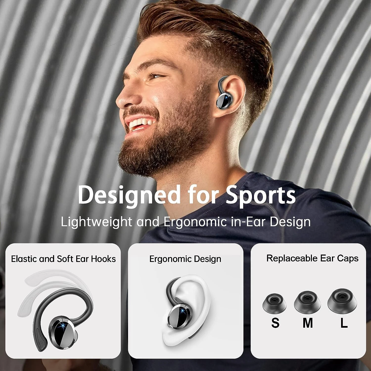 Conception Crochets d’Oreille Sport et Étanche IP7 : Nos écouteurs sport sont équipés de crochets d’oreille ergonomiques en silicone pour un ajustement sûr et confortable, même pendant les exercices les plus intenses. Nous fournissons également 3 paires de caches-oreilles (L/M/S) pour un ajustement personnalisé. Grâce au revêtement IP7 étanche, ils résistent à la transpiration et à la pluie, ce qui les rend parfaits pour la course, le cyclisme et d’autres activités. 🏃♂️🌧️