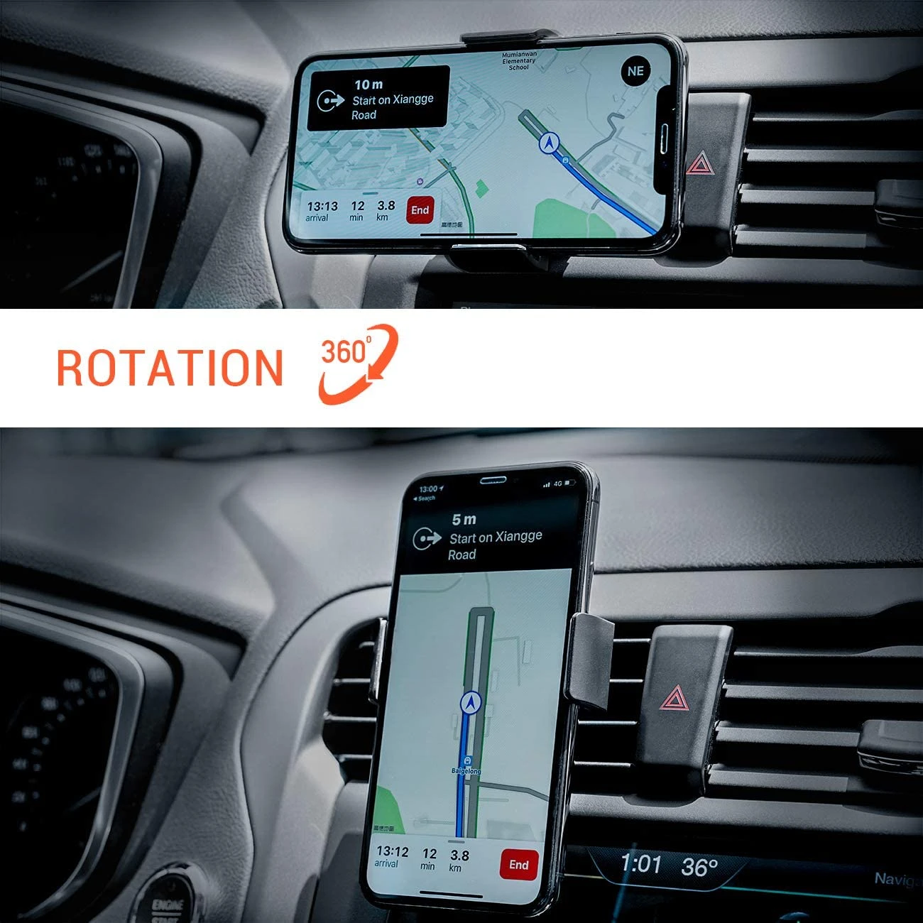 Conçu pour être fixé sur les grilles d’aération verticales ou horizontales de votre véhicule, notre support assure une installation stable, sans risque de déplacement. Il reste fermement en place même sur les routes irrégulières, vous permettant de conduire en toute tranquillité.