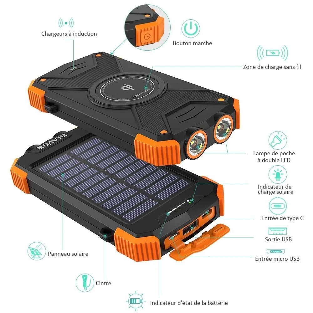 Découvrez notre batterie à rechargement solaire, conçue pour répondre à tous vos besoins en énergie lors de vos aventures en extérieur. Avec plus de dix ans d’expertise dans la conception de chargeurs solaires portables, nous avons su gagner la confiance de millions d’utilisateurs à travers le monde. Voici les principales caractéristiques de ce produit innovant et fiable :