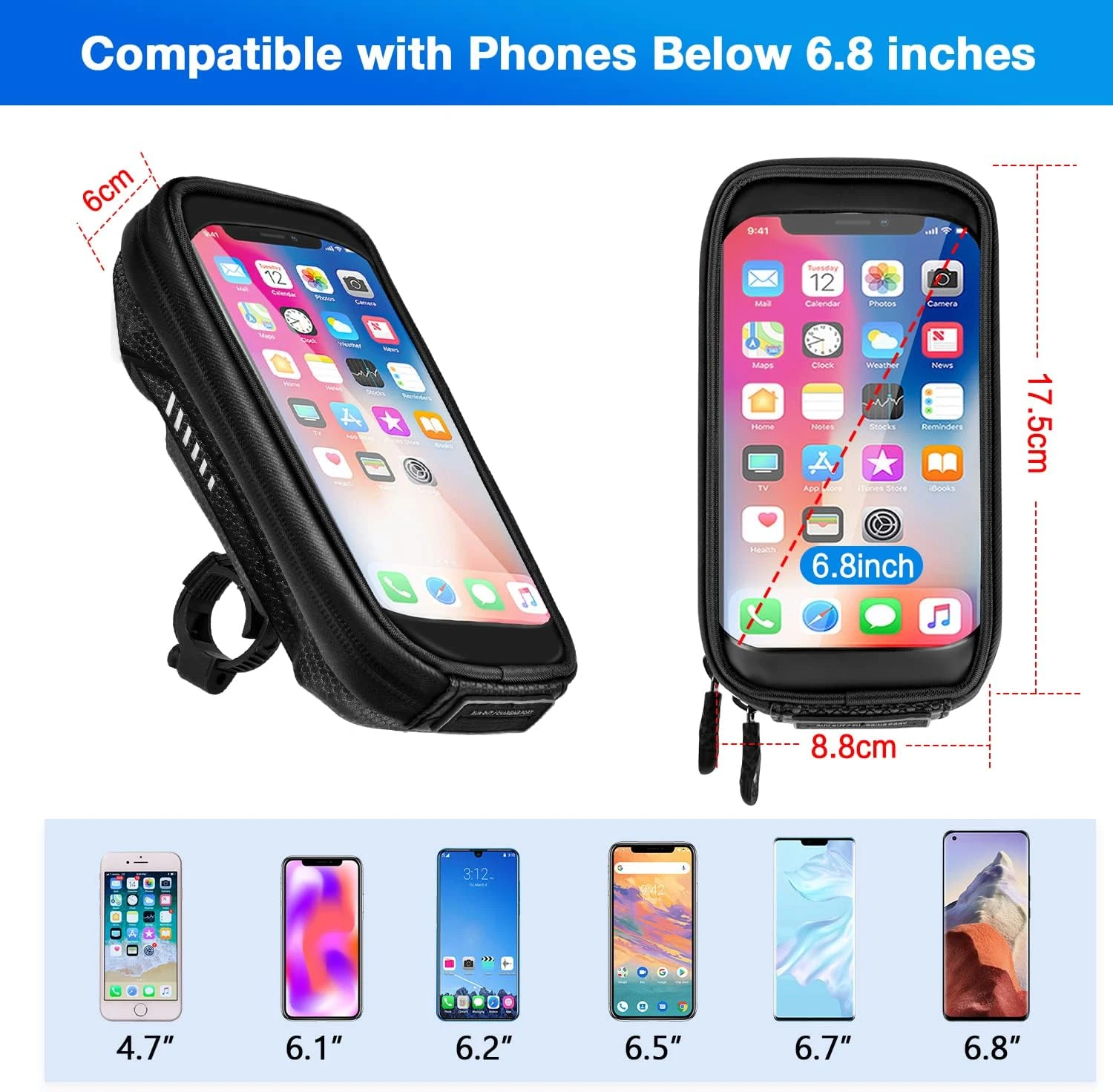 - Taille smartphone : Jusqu’à 6,8 pouces