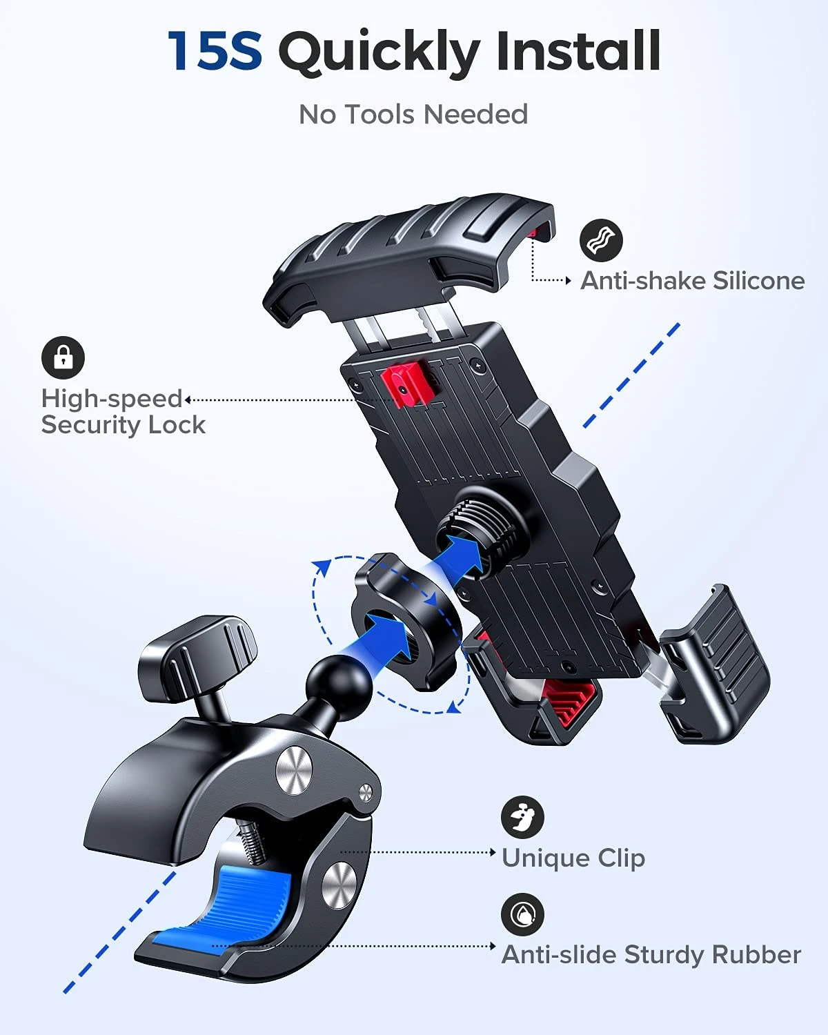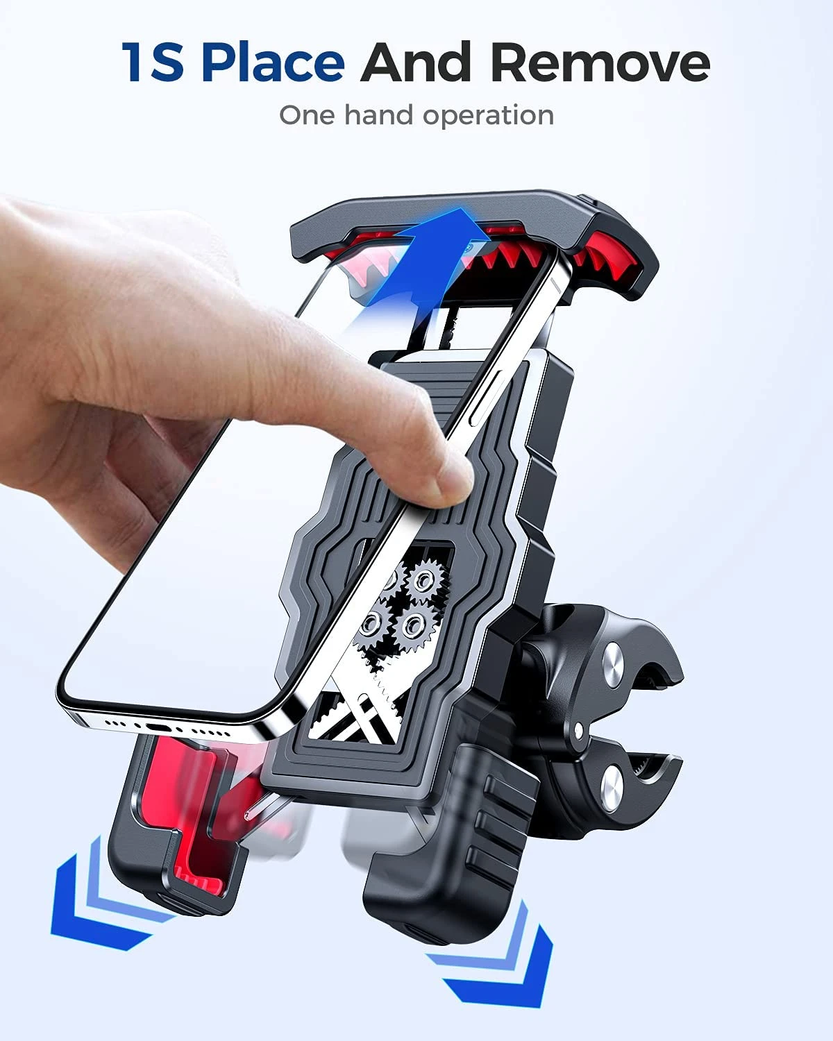 Notre support pour téléphone EdorReco se fixe sur les vélos et les motos. Son caoutchouc antidérapant augmente la stabilité de sorte à ce qu’il ne s’incline pas ou ne vacille pas. Les pinces se serrent et se desserrent automatiquement en appuyant sur la partie supérieur ❤️.