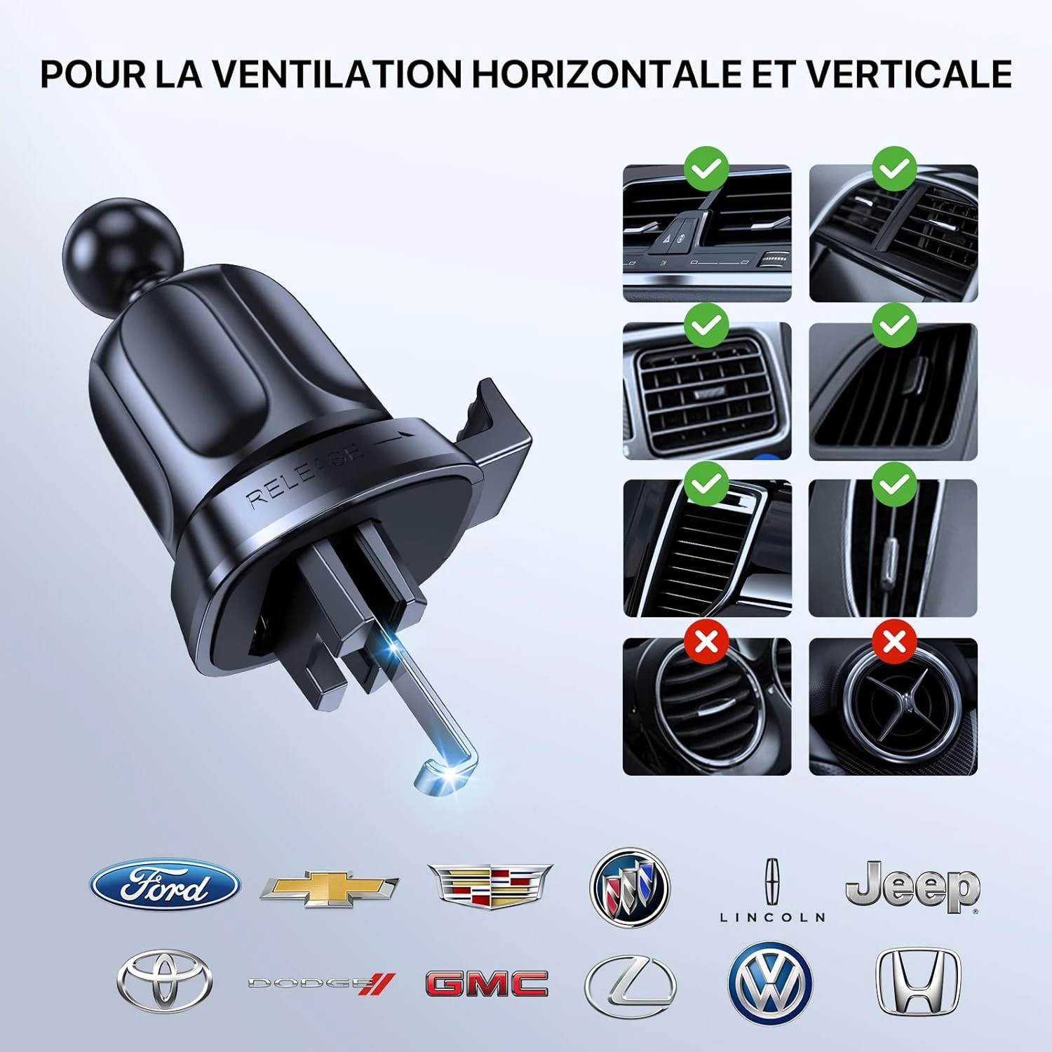 Refuser de tomber : 💗 Notre support de téléphone adopte une conception de verrouillage améliorée qui se fixe fermement sur la grille d’aération de votre voiture. Le système de fixation garantit une fixation stable, même sur les évents horizontaux et verticaux, assurant ainsi que votre téléphone reste en place en toute sécurité.