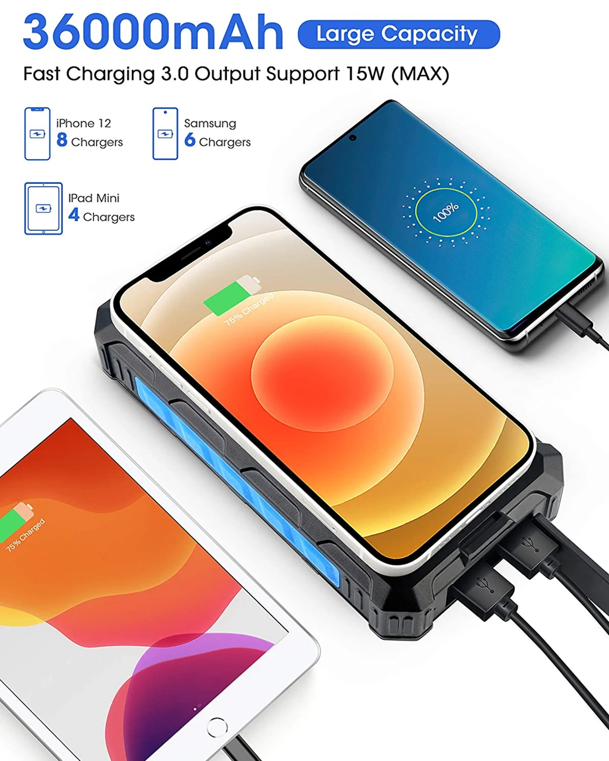 - Recharge 7 à 9 fois un smartphone en moyenne – 36000mAh