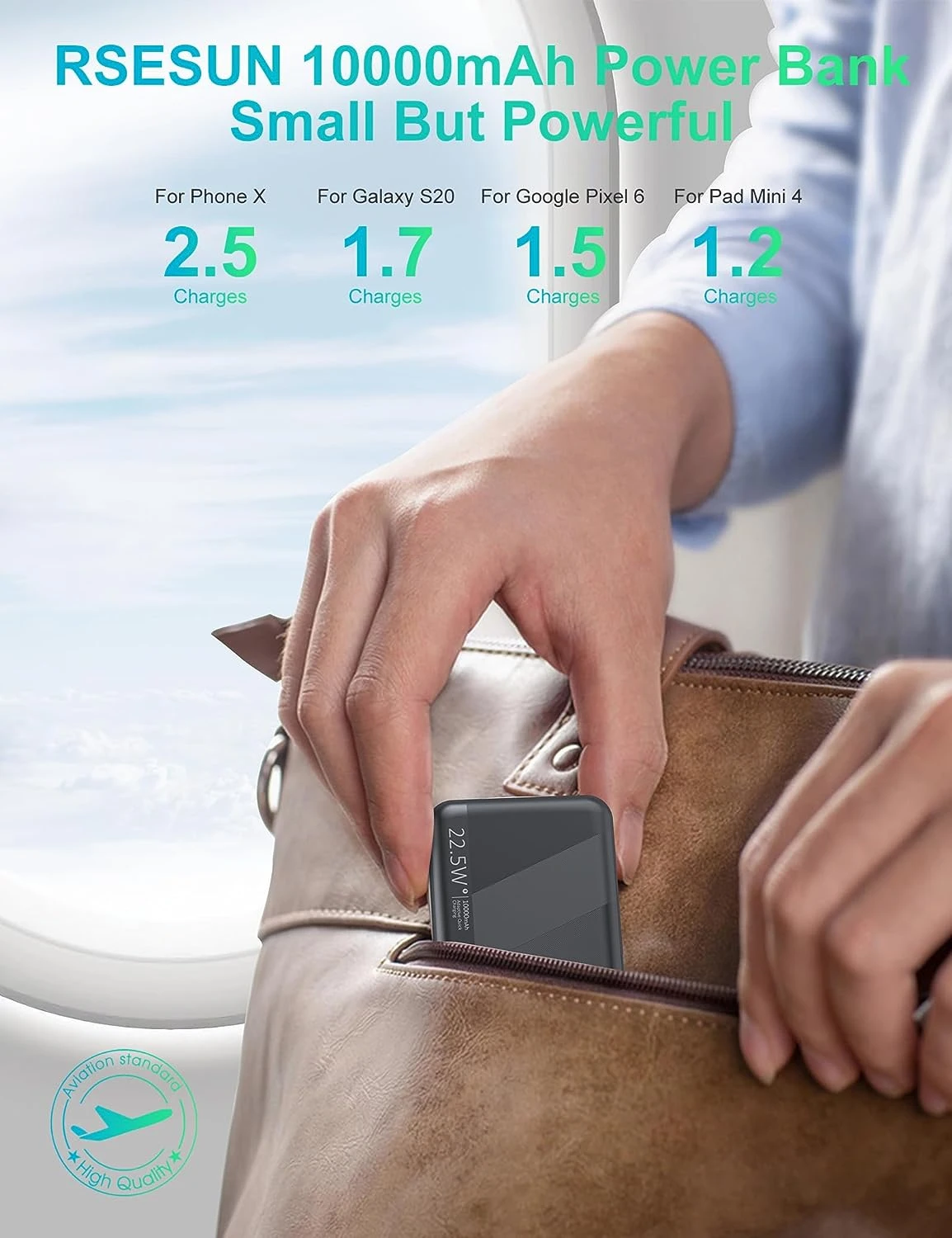 Dotée d’une batterie portable de 10 000 mAh à haute densité, notre PowerBank offre une longue durée de vie. Le circuit intégré de protection intelligent permet une charge silencieuse à faible courant, tandis que le capteur de température NTC assure une surveillance sécurisée de la température de l’alimentation. Vous pouvez donc l’emporter et l’utiliser en toute sécurité lors de vos déplacements, y compris lors de vos vols 💖.