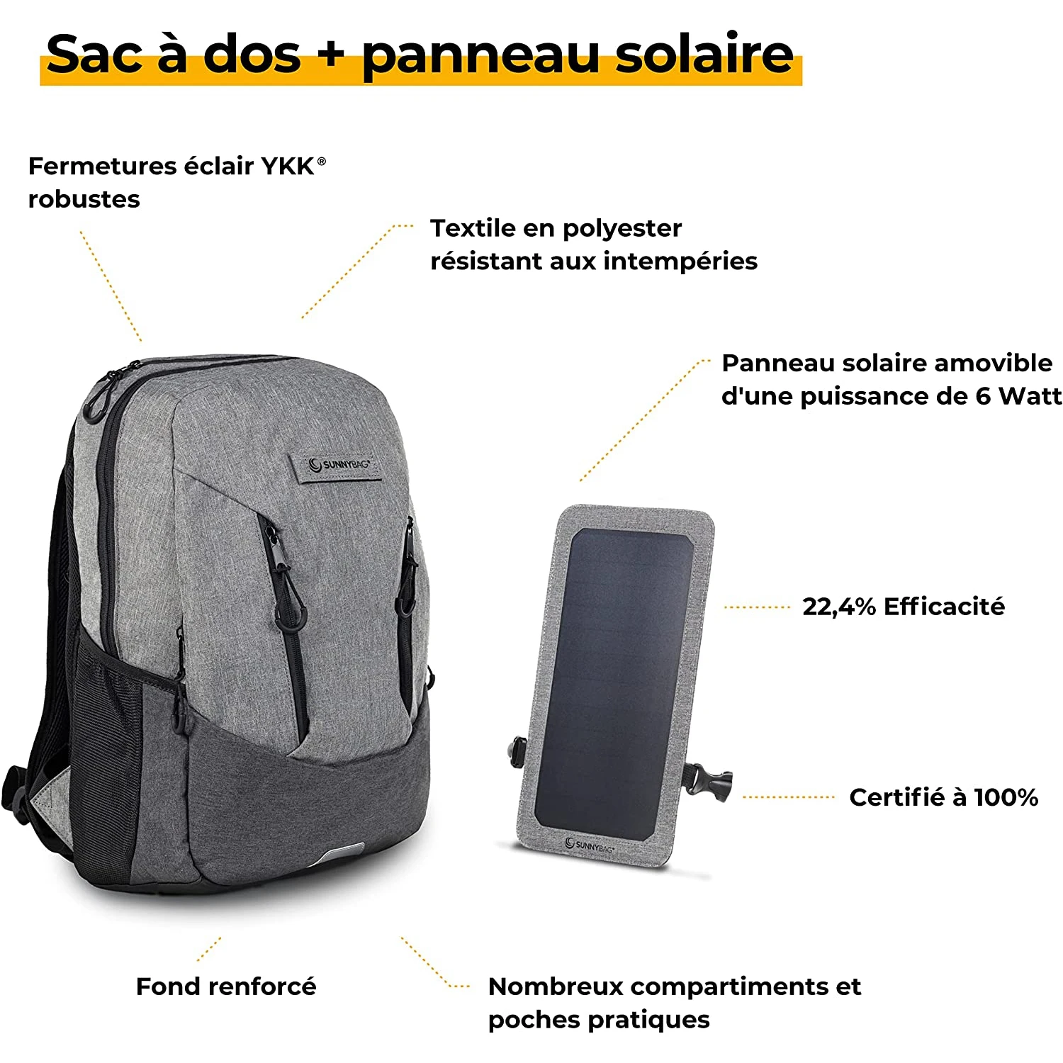 Chargeur solaire intégré à un sac à dos robuste et imperméable