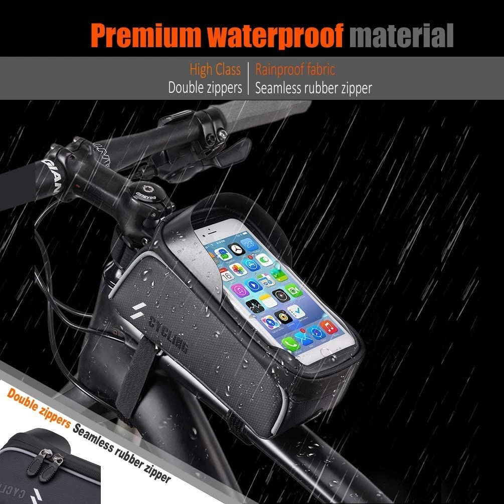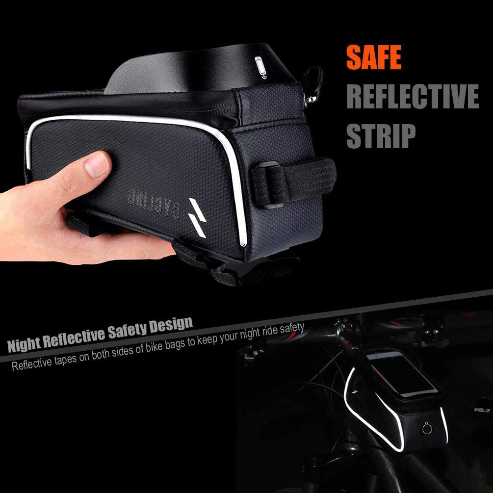 L’écran tactile intégré à la fenêtre en TPU de notre sacoche permet d’utiliser votre téléphone facilement, même en roulant, pour consulter vos itinéraires ou répondre à vos messages. Le trou caché pour écouteurs vous permet de répondre à des appels ou d’écouter de la musique tout en pédalant, ajoutant ainsi une touche de commodité à vos trajets.