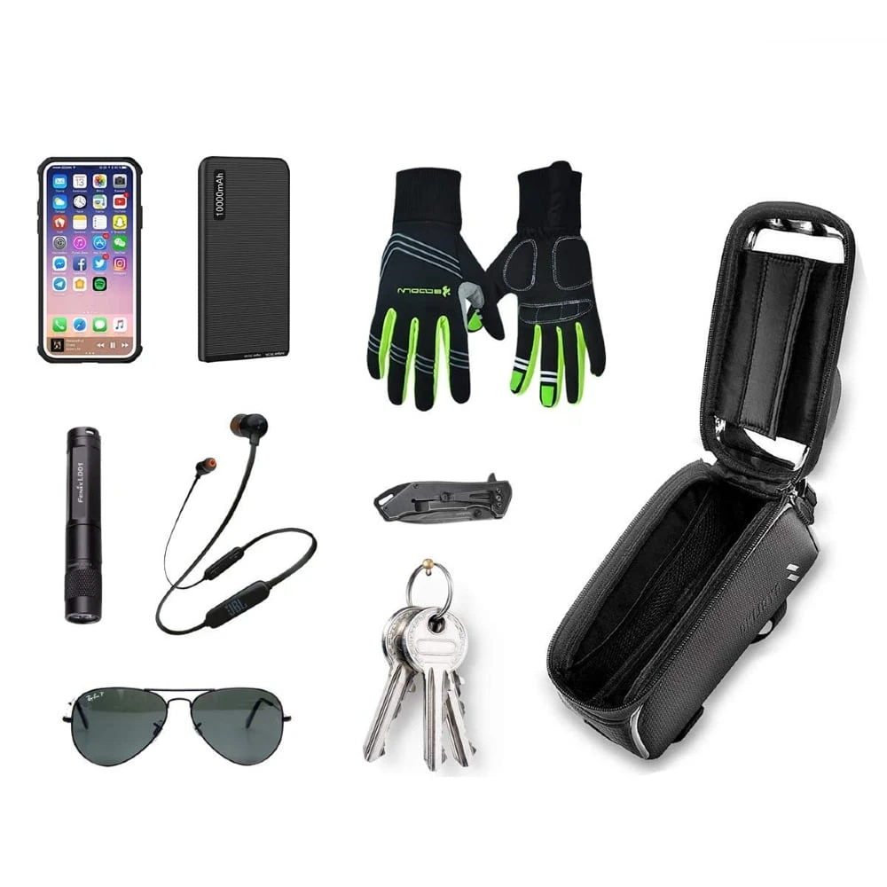 Notre sacoche de vélo offre un espace généreux pour transporter vos essentiels lors de longues sorties. Elle est parfaitement adaptée aux téléphones de moins de 6,5 pouces, y compris les modèles iPhone 11, 8 Plus, XS Max et Samsung Galaxy. Grâce à sa grande capacité, elle peut également contenir des objets tels qu’un chargeur, une batterie externe, un câble USB, des outils de réparation pour vélo et même une petite pompe à air.