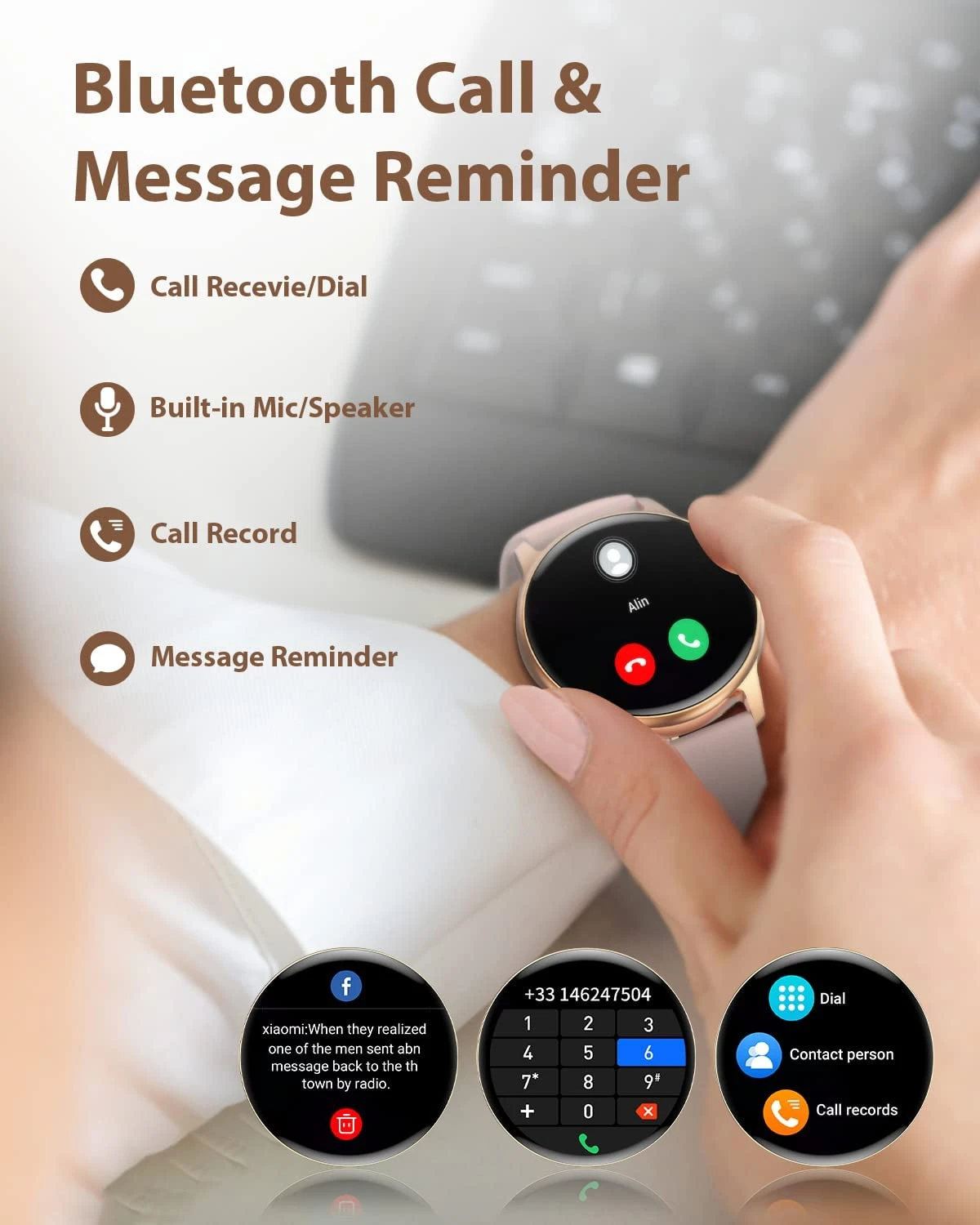 Elle affiche les notifications de son téléphone directement sur la montre, de sorte qu’elle n’aura plus jamais à s’inquiéter de manquer un message important.