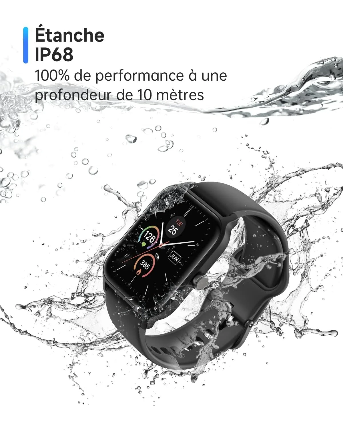 Adaptez votre expérience sportive avec plus de 100 modes d’exercice différents. De la marche à la natation (avec une étanchéité IP68), en passant par la course, le cyclisme, le tennis et la musculation, notre montre de suivi de fitness enregistre automatiquement les données essentielles pendant vos séances d’exercice 💖. Suivez vos pas quotidiens, les calories brûlées, la vitesse et la distance parcourue pour améliorer vos performances. Notre Smartwatch pour Natation est conçue pour répondre à vos besoins d’activités aquatiques tout en vous offrant une gamme complète de fonctionnalités de suivi de santé et de fitness. Plongez dans l’expérience connectée avec style et confiance 😊.