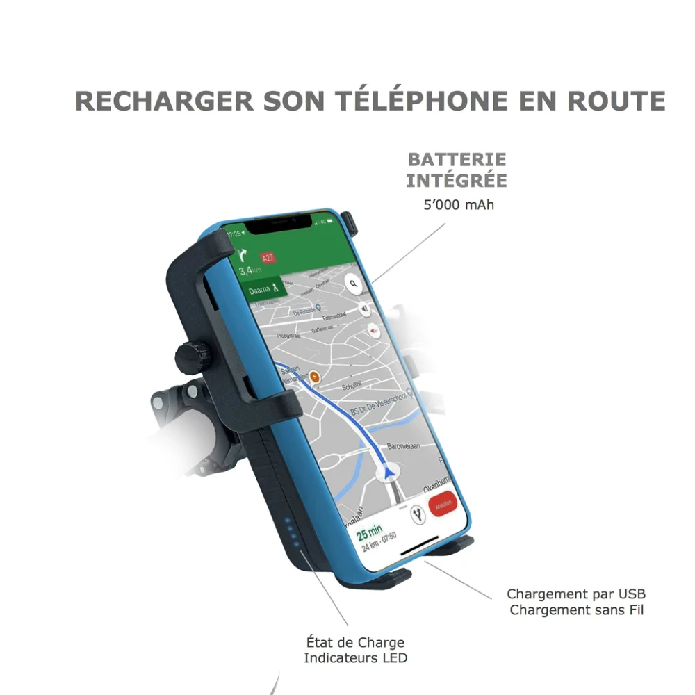 Notre Support de moto pour téléphone portable dispose d’une batterie intégrée à l’intérieur d’une capacité de 5000mAh donnant 1 à 2 charges ❤️.