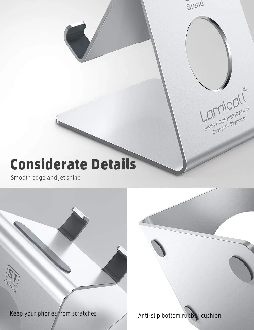 Conception Élégante : 🤝 Fabriqué en alliage d’aluminium robuste, notre support téléphone est à la fois solide et léger. Son bord lisse et son design portable en font un accessoire élégant pour votre bureau ou votre maison, s’adaptant parfaitement à tout environnement.