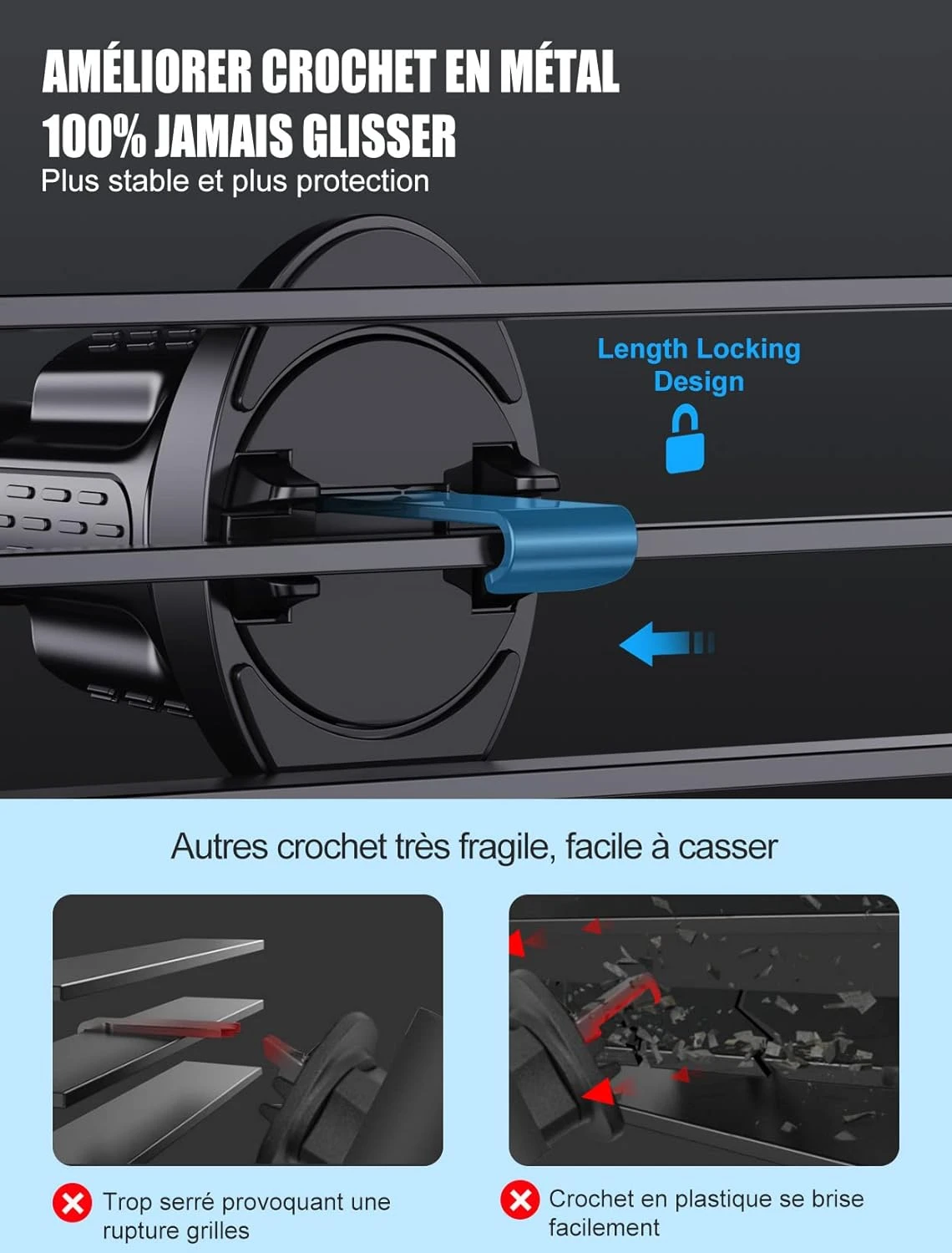 | Conception à crochet intelligente pour plus de stabilité | |