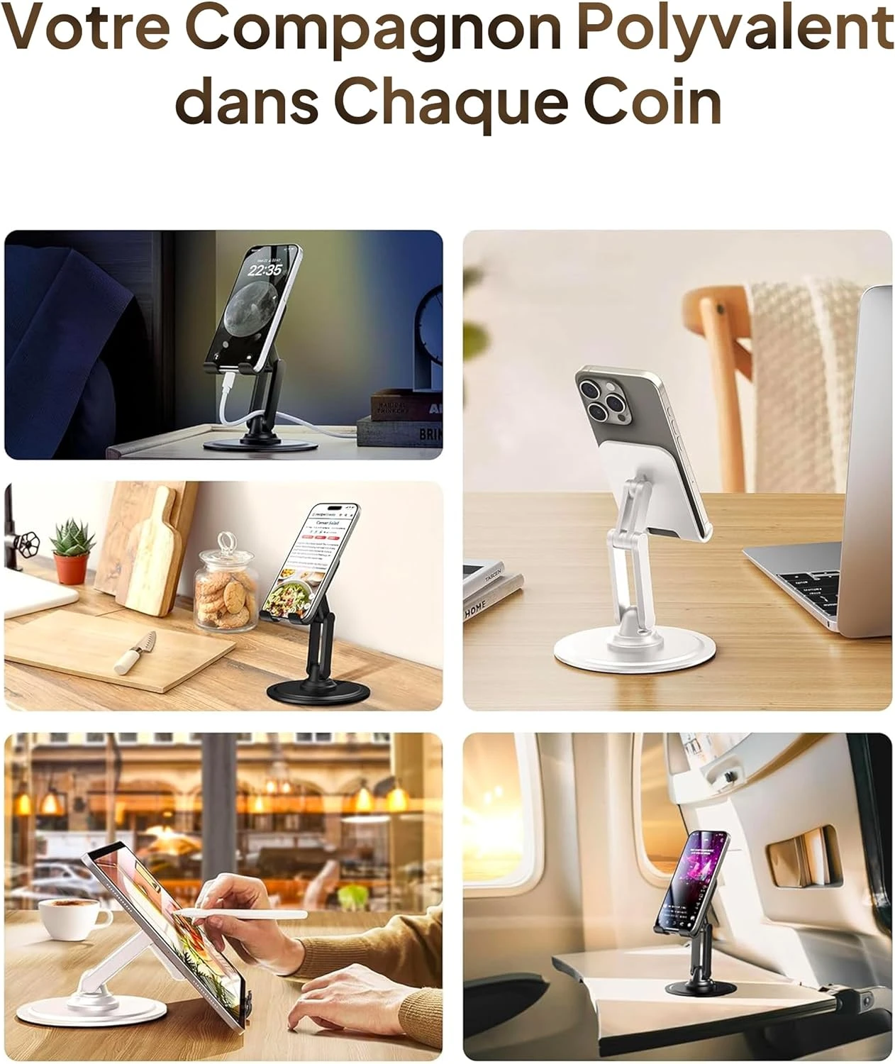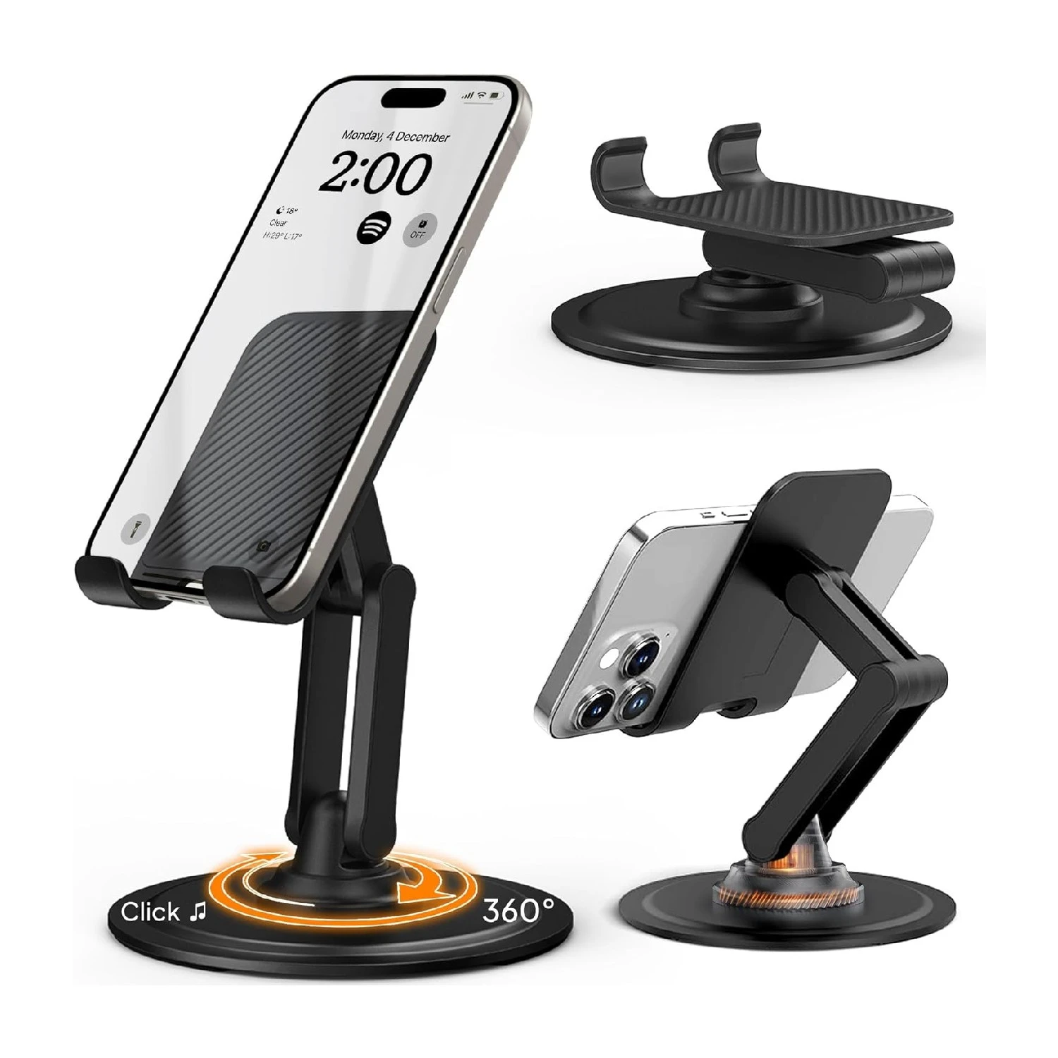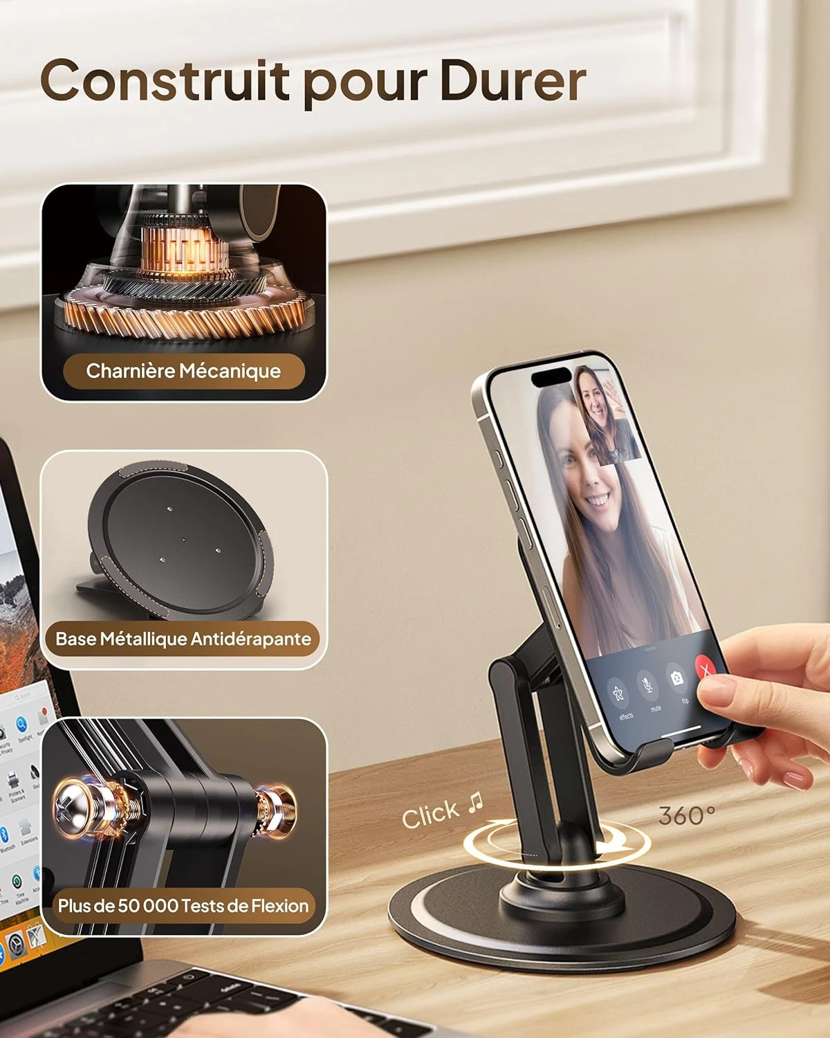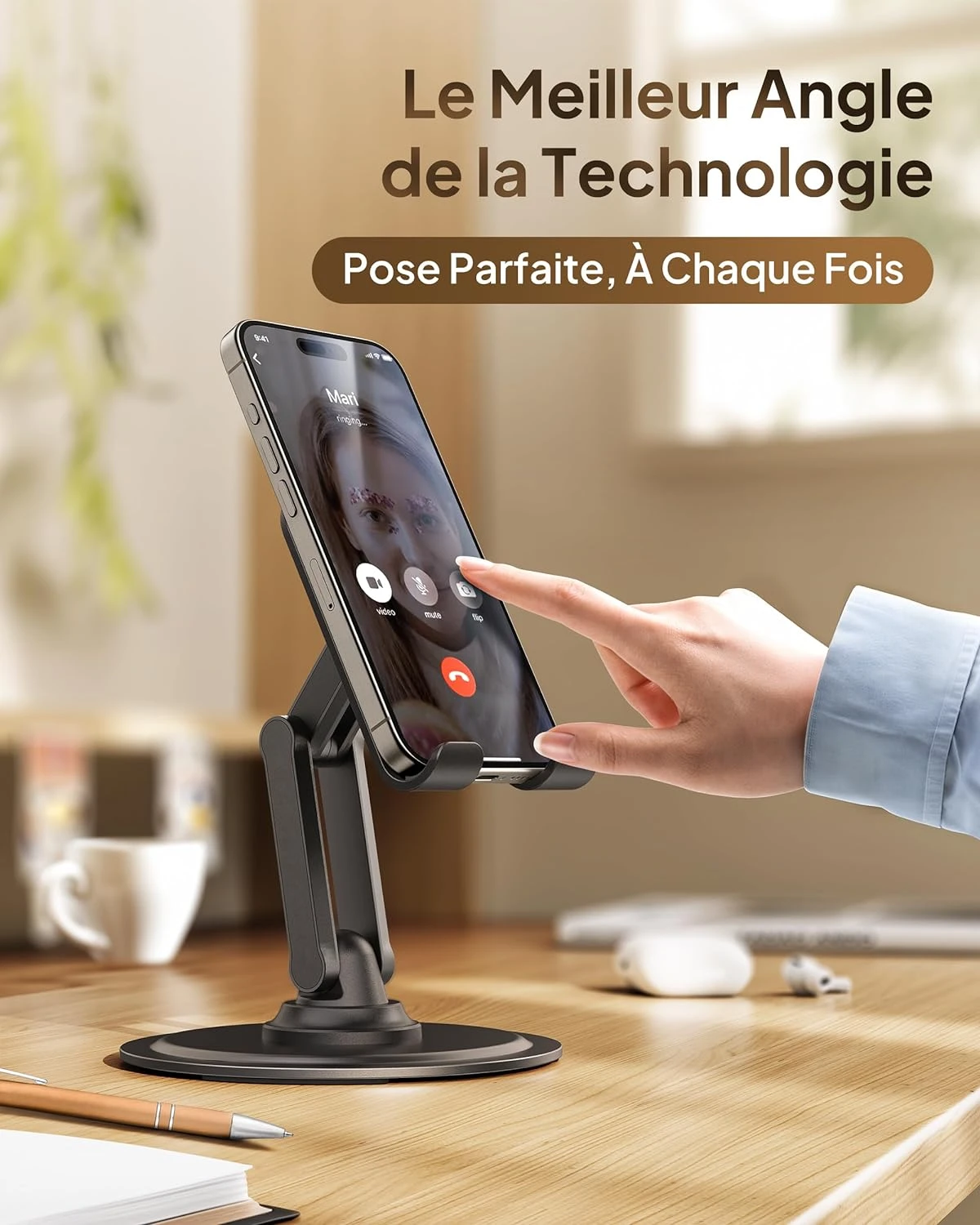 Support de Téléphone de Bureau au Design Remarquable : 🔥 Avec sa rotation 360° conviviale, sa base antidérapante sans balancement et son design pliable, notre support iPhone se distingue par sa grande compatibilité et sa praticité. Offrant une expérience utilisateur remarquable, il s’adapte parfaitement à vos besoins, que ce soit pour le travail ou les loisirs.
