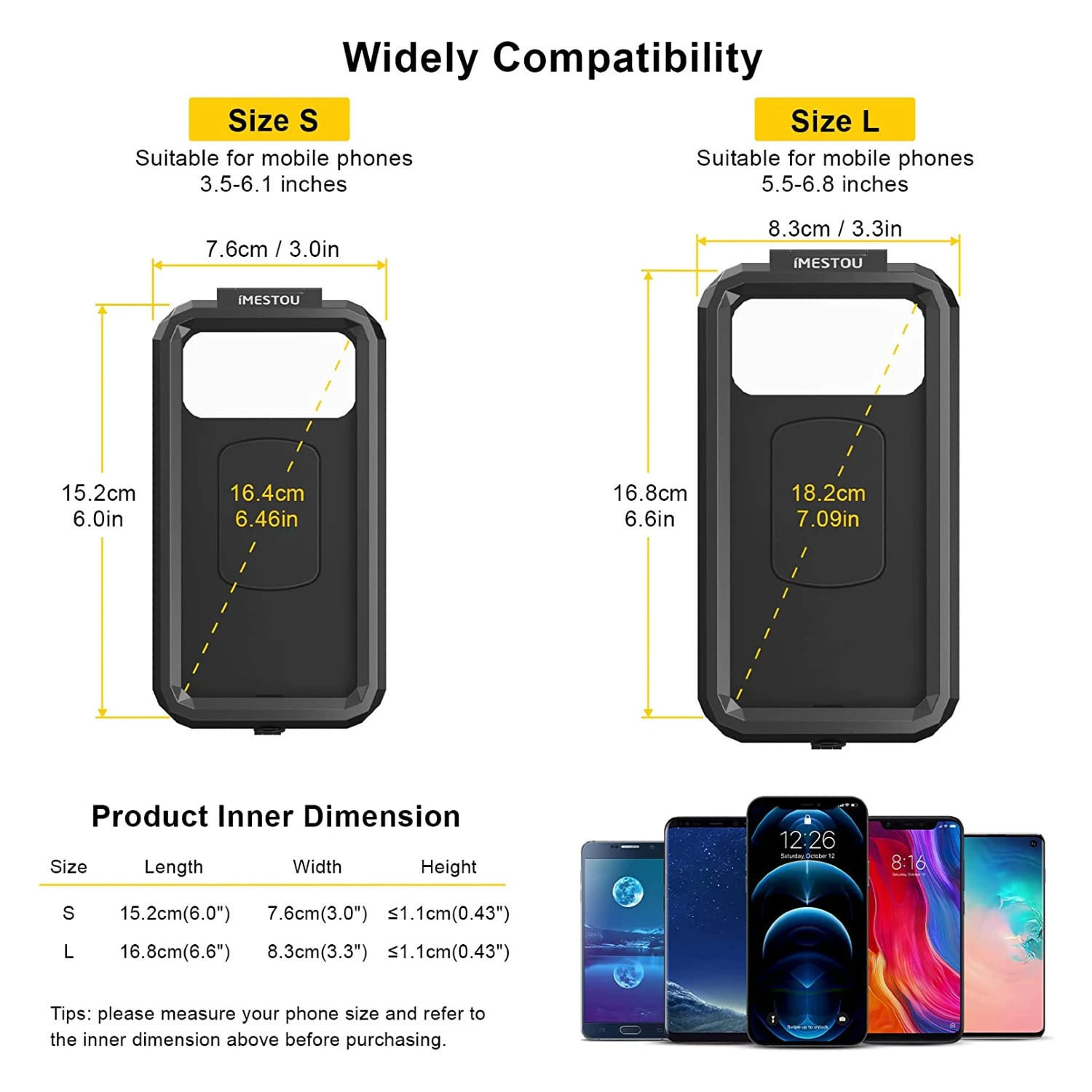 - Taille smartphone : De 3,5 à 6,8 pouces