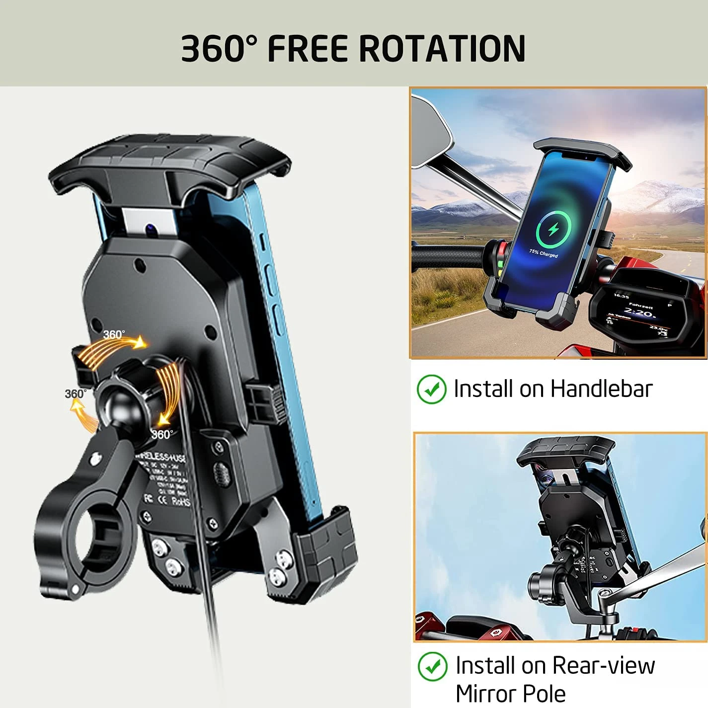 Notre support de téléphone Moto avec chargeur offre deux options de charge : par induction (sans fil) ou via un câble USB-C.