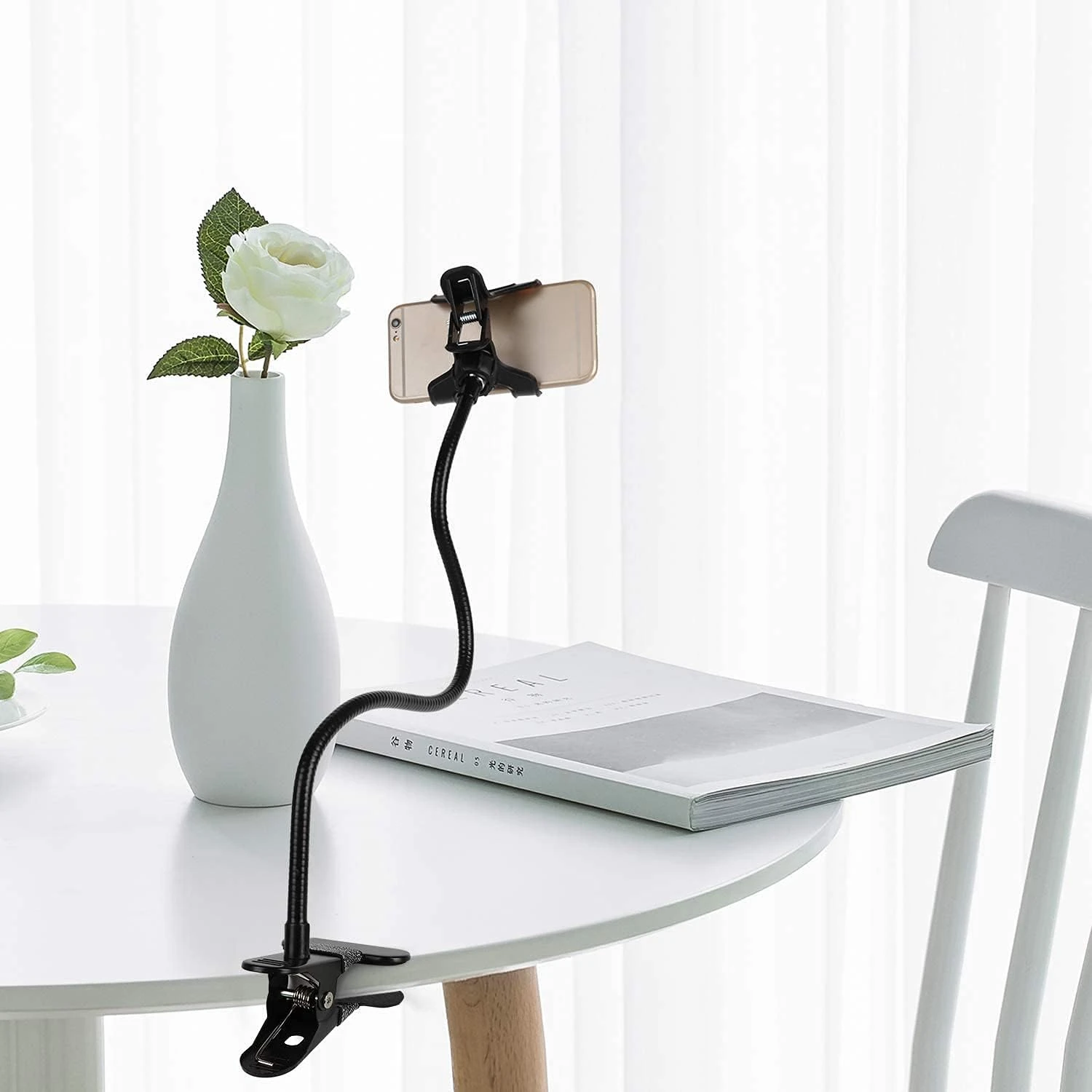 Ce support universel convient à une variété de smartphones, avec un bras col de cygne réglable d’environ 60 cm de longueur et une pince de serrage pouvant accueillir des smartphones jusqu’à 97 mm de largeur. Le montage rotatif à 360 degrés vous permet d’ajuster facilement l’angle de vue pour une expérience optimale.