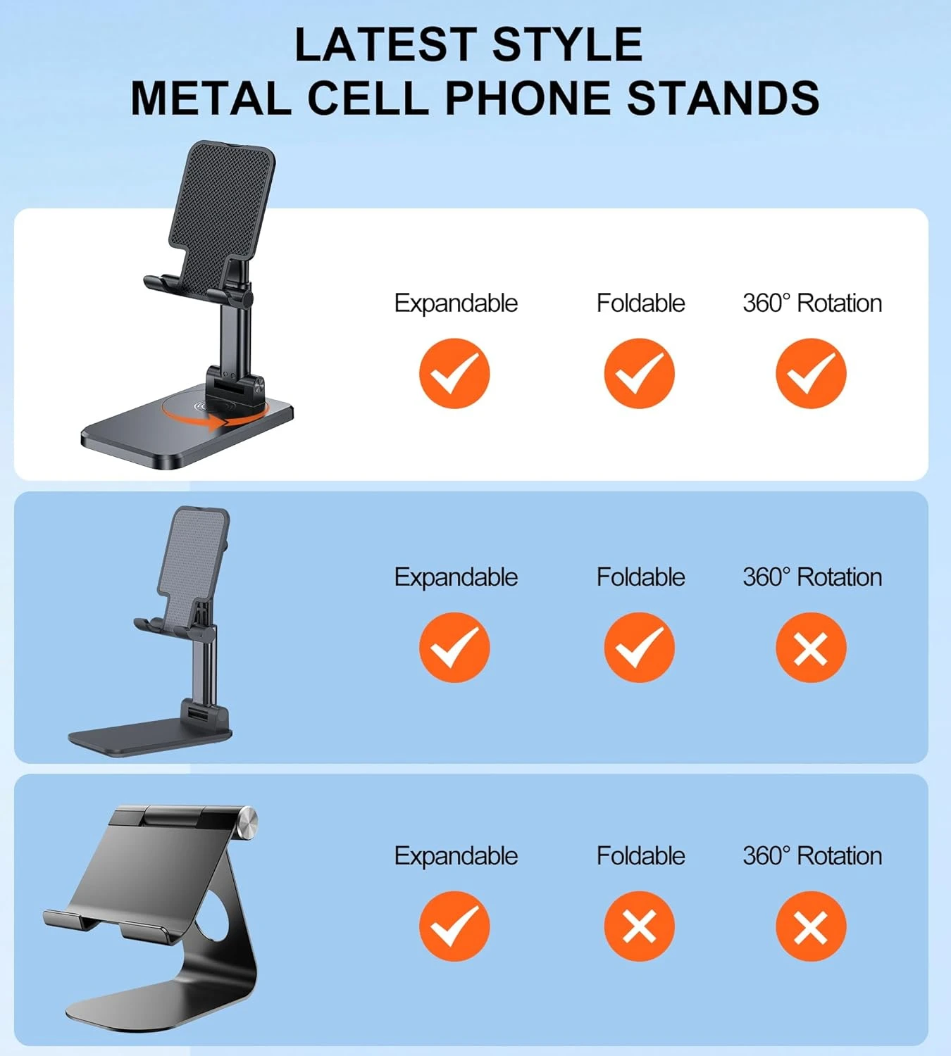 Grâce à sa base en métal lesté, ce support assure une stabilité maximale, même lorsque votre téléphone est équipé d’un étui épais. Vous pouvez l’utiliser en toute confiance, sachant que votre appareil restera fermement en place.