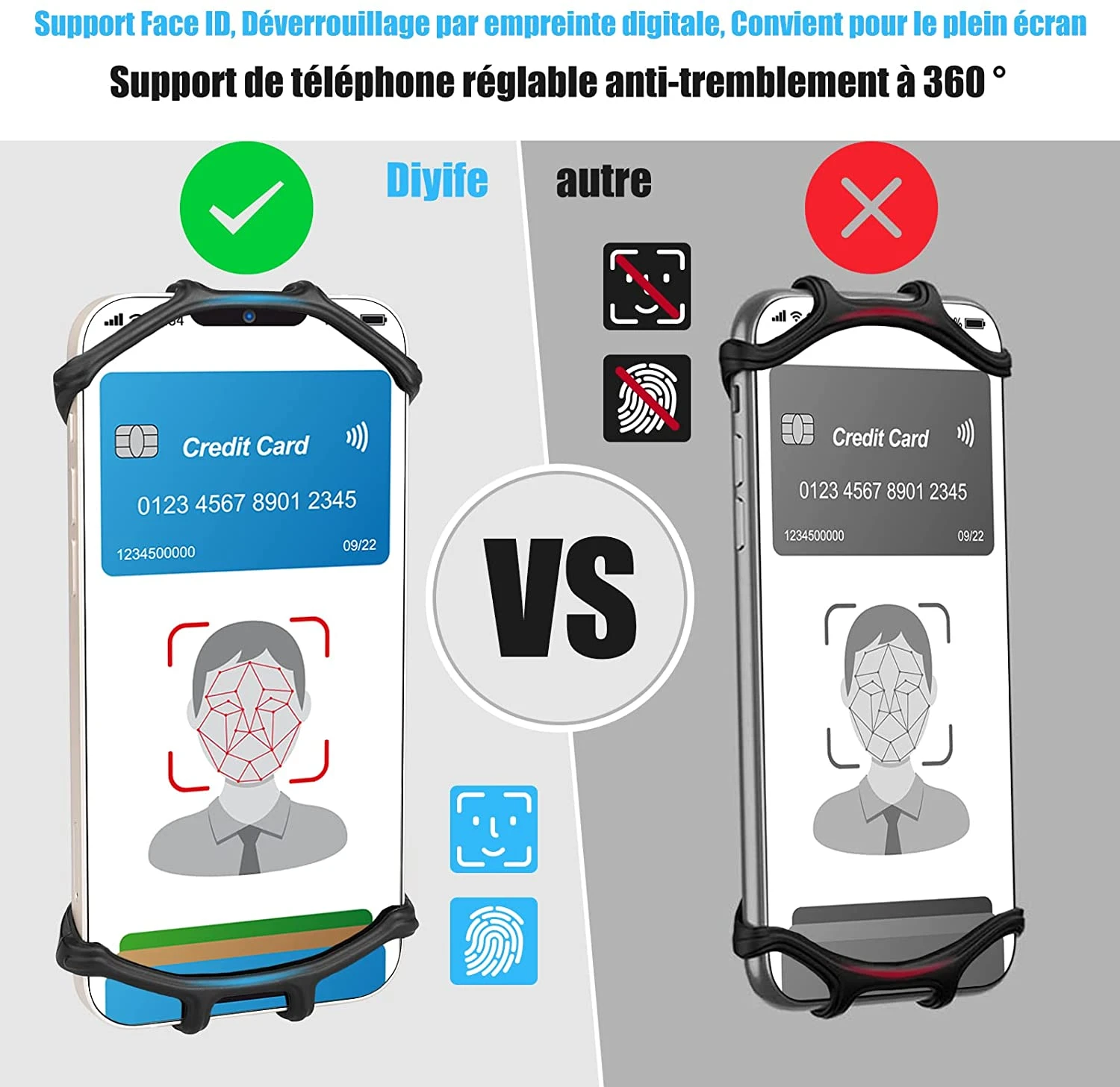 Fabriqué en silicone haute ténacité, notre support absorbe efficacement les chocs et protège votre téléphone des rayures. Même sur des terrains accidentés, il reste ferme et stable, pour que votre téléphone ne glisse pas, peu importe les secousses.