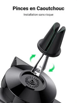 Notre support est conçu avec un mécanisme de verrouillage automatique qui maintient fermement votre téléphone en place. Un simple clic indique que le téléphone est bien verrouillé, et pour le retirer, il vous suffit d’appuyer sur le bouton de déverrouillage.