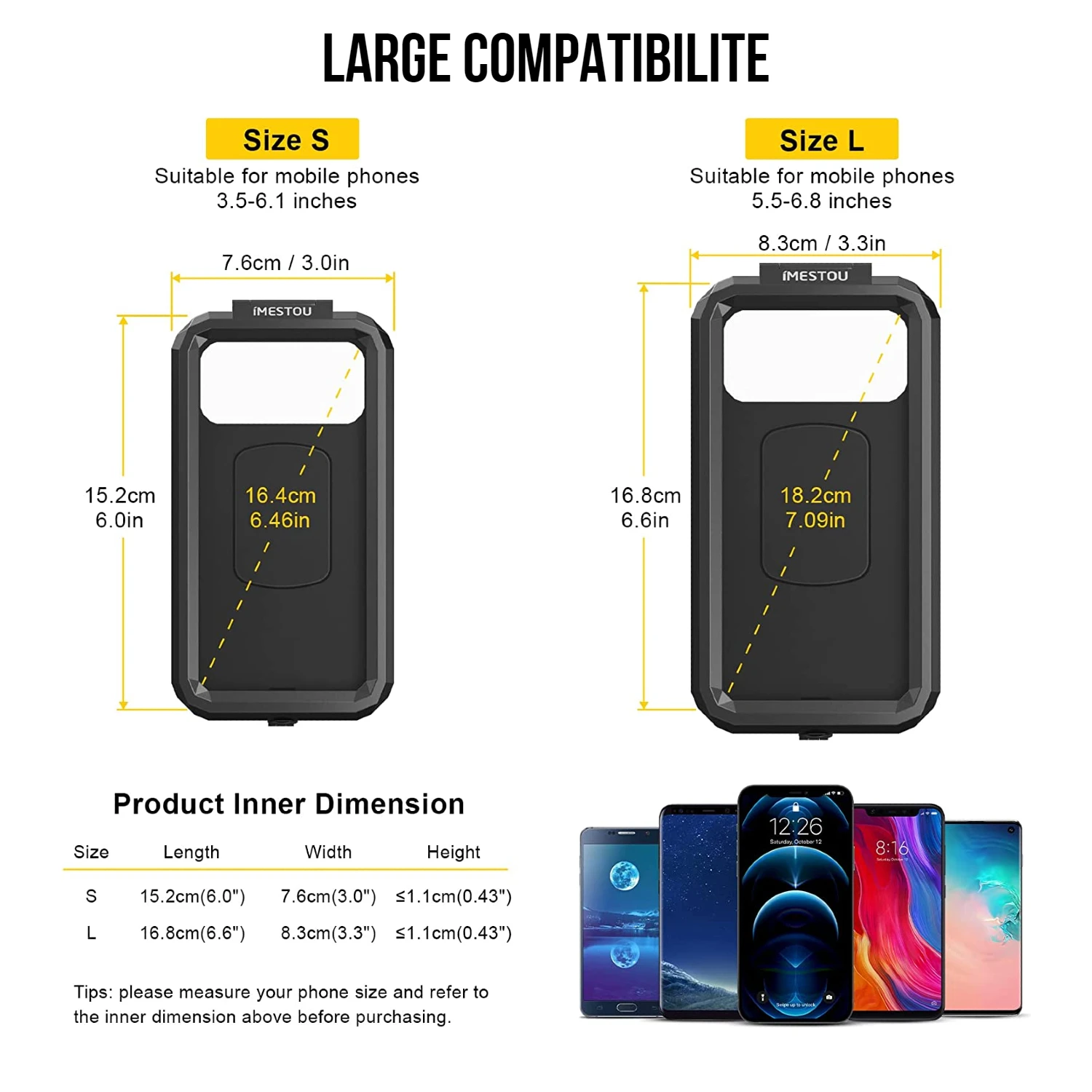 Notre support universel pour téléphone de moto est l’accessoire idéal pour garder votre téléphone à porter de main et en sécurité pendant vos déplacements. Ses deux tailles disponibles, S et L, assurent la compatibilité avec la plupart des smartphones, pour ne pas dire tous.